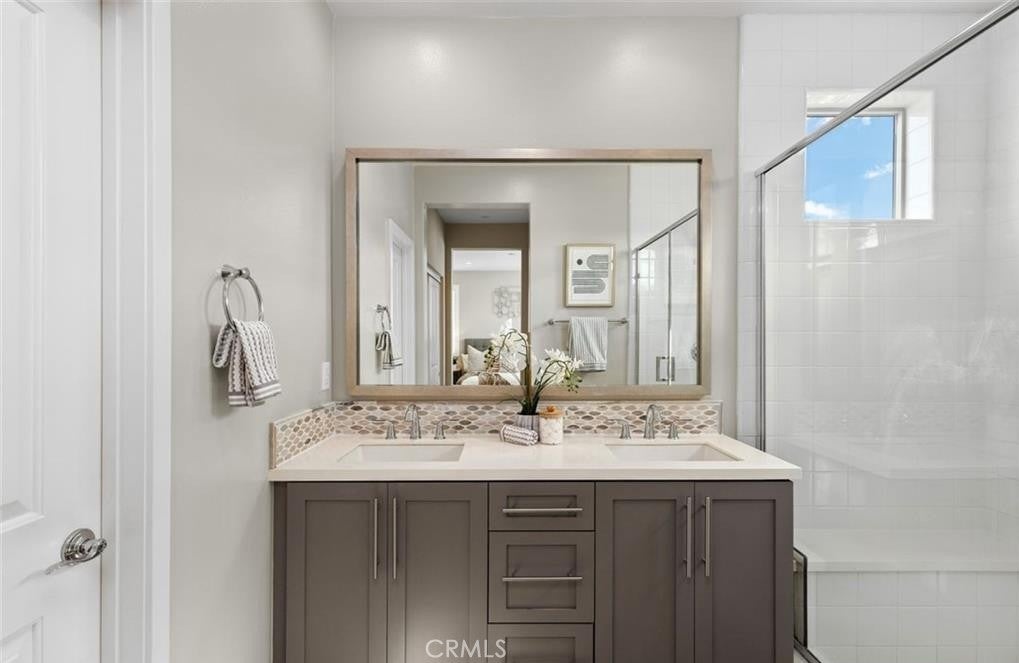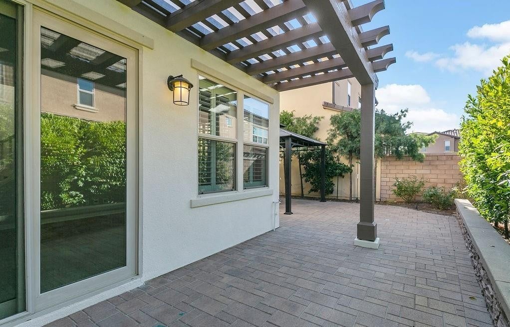 Welcome to this stunning Baker Ranch home, where modern elegance and everyday comfort come together effortlessly. This newer detached corner-lot residence offers 4 bedrooms and 3 bathrooms with a thoughtfully designed floor plan that blends functionality, style, and ease of living. Through the charming arched entry, the bright, open-concept main level seamlessly connects the living, dining, and kitchen areas. French oak–style wood floors, large windows, and custom plantation shutters create a warm and elegant atmosphere. The chef’s kitchen is a standout with a generous island, designer backsplash, modern cabinetry, and a walk-in pantry—perfect for both daily living and entertaining. A main-level bedroom and full bath offer flexibility for guests or a home office. Direct access to the oversized two-car garage with built-in storage adds everyday convenience. Upstairs, two spacious bedrooms share a beautifully upgraded bathroom, while the expansive primary suite features dual closets (including a walk-in) and a spa-inspired bath with dual vanities, an oversized glass shower, and a private water closet. Enjoy outdoor living at its finest on the large wrap-around patio, complete with a permanent gazebo, multiple areas for lounging and dining, and a unique garage door opening to the patio for added versatility. Residents of Baker Ranch enjoy resort-style amenities—including three private pool facilities, seven parks, tennis courts, hiking and fitness trails, and community events year-round. With upgraded finishes throughout and an ideal location near shopping, dining, and entertainment, this home offers the perfect blend of modern luxury and Southern California lifestyle.