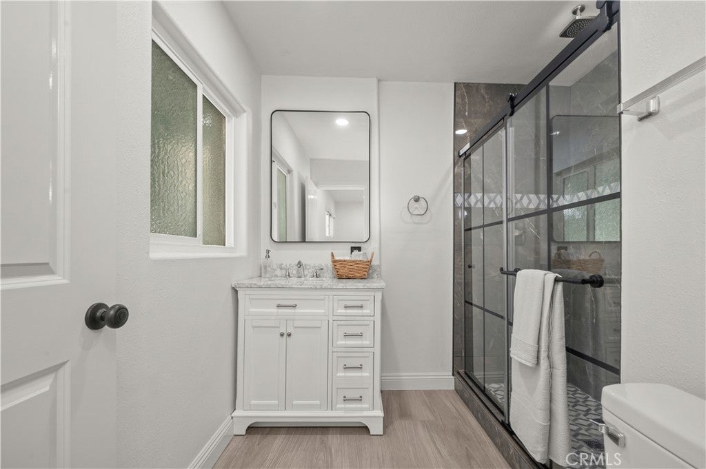 Turnkey Dual-Home Oasis with Designer Finishes and Brand-New ADU! Welcome to 638 N Buttonwood Street in Anaheim — where modern design meets versatile living. This fully renovated 3-bed, 2-bath main home and brand-new 1-bed, 1-bath ADU combine for nearly 2,100 sq. ft. of luxurious living space — perfect for multi-generational families, rental income, or a private guest retreat. Step into the main residence and instantly feel the warmth of the open-concept design. The chef’s kitchen features stone countertops, crisp white shaker cabinetry, and stainless appliances, all framed by rounded drywall corners and rich wood floors. Oversized sliding glass doors lead to a covered backyard patio, creating seamless indoor-outdoor living. Every detail has been upgraded — from new windows and doors to a new roof, and tankless water heater — ensuring comfort, efficiency, and peace of mind for years to come. The ADU is brand-new, offering a spacious 800 sq. ft. of contemporary living with a full kitchen, elegant bath, and private entrance — ideal for extended family or generating steady rental income. Outdoors, the property shines with fresh landscaping featuring eight avocado trees and stately palms, a stacked-stone façade, wrought-iron gated driveway, and an epoxy-finished two-car garage. Nestled in a quiet, central Anaheim neighborhood close to shopping, freeways, and top schools, this move-in-ready property is the total package — combining beauty, function, and financial opportunity.