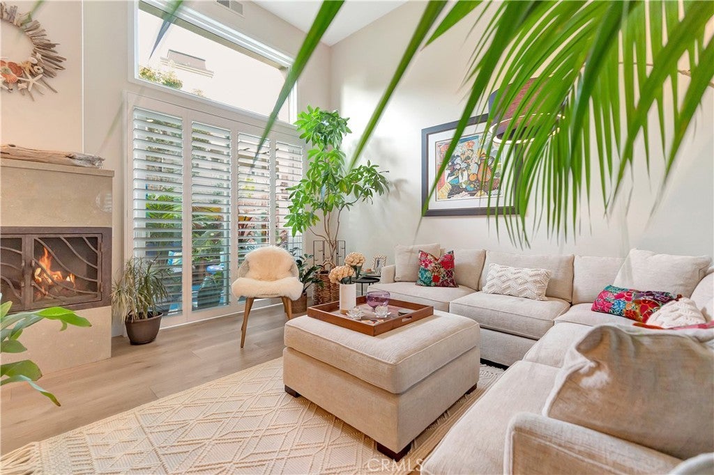 Located in the highly sought-after gated community of Surfcrest in Huntington Beach, this light and airy home captures the essence of Southern California coastal living with views of the ocean from almost every window and just steps from the sand, the scenic trails of the Bolsa Chica Wetlands, and award-winning SeaCliff Elementary School. The open floor plan features two spacious bedrooms + loft/office area and two and a half bathrooms, creating an inviting sense of comfort and style throughout. The living room offers a welcoming ambiance with a custom stone fireplace and direct access to a private front patio, perfect for relaxing or entertaining. The dining area overlooks the living room for a connected, open feel. The open concept kitchen/family room combo includes generous counter space, stainless steel appliances and a sunny balcony ideal for enjoying the ocean views all adjacent to the cozy family room, perfect for gatherings! Both bedrooms are generously sized, providing comfort, privacy, and ample storage. The primary suite has views of the ocean and a cozy fireplace. Primary bath has dual sinks, soaking tub, separate shower and walk-in closet. Fabulous upgrades throughout including custom paint, newer beautiful hard surface flooring, custom light fixtures, plantation shutters and custom window coverings, new baseboards and so much more. Additional highlights include large interior laundry room with sink and extra built-in cabinets and an attached 2 car garage with ample storage for convenience. Enjoy the sound of the waves from your bedroom, the community pool and spa and a VERY short walk to the beach. Ideally located near parks, shopping, and dinning this beautiful home offers the perfect blend of coastal charm and modern comfort in one of Huntington Beach’s most desirable gated communities!