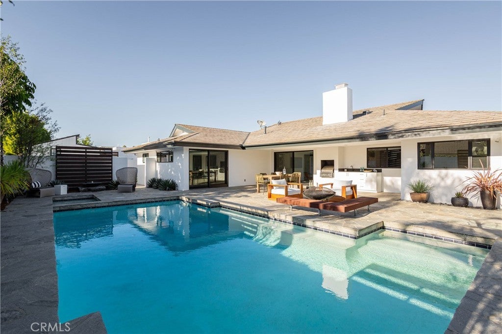 Situated near the end of Nottingham Road at the top of a gentle hill, 1001 Nottingham sits as a reminder of the architecture of a bygone era. Offering exceptional privacy, the double entry doors sit underneath a covered flagstone walk, hidden from the street by a large privacy wall & iron gates. A large formal living area with a fireplace is amply lit by oversized picture windows and walls of sliding glass. On the other side of the entry, a light, bright dining area with floor to ceiling glass offers the private entry courtyard with bubbling fountain and rock garden as a backdrop for meals and entertaining. The kitchen offers a blend of original midcentury character and modern amenities, contrasting an updated stainless steal appliance package with the homes original, refinished teak wood cabinetry. A small office nook, or additional dining space sits adjacent to the kitchen and offers access to the rear yard. The family room offers an additional fireplace as well as a built-in mirrored bar area which appears to be a wall cabinet until opened. A large sliding glass door opens from the family room out to a generous rear yard space with a large swimming pool, jacuzzi, built in barbecue with a patio sink and mood lighting. In the rear corner of the yard, a small, freestanding office area can be utilized in a multitude of ways. Back inside, the bedroom wing offers two bedrooms and two full recently updated bathrooms including a master suite which opens out to the pool deck. An oversized two car garage, a laundry/ mudroom and a slate roof. With two bedrooms and two and a half bathrooms, the additional, flexible spaces offer a multitude of living arrangements in an iconic and well preserved mid century structure, built in 1960.