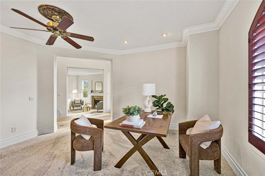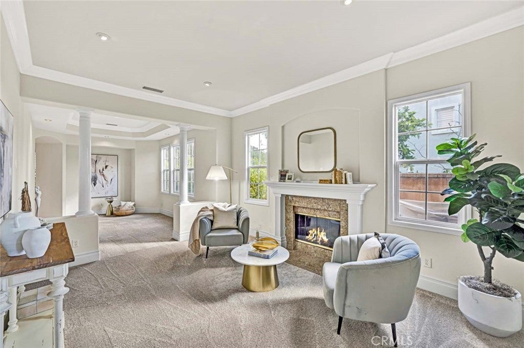 Welcome to this stunning and spacious home, where a grand two-story foyer and dramatic semi-circular staircase make a beautiful first impression. With 5 bedrooms and 3.5 baths, this residence offers incredible flexibility—including a main-level office that can serve as the fifth bedroom with huge walk-in closet. Enjoy elegant entertaining in the formal living room with fireplace and the separate dining room for your holiday dinners, or keep things casual in the oversized family room, also featuring a cozy fireplace. The huge kitchen is designed for both cooking and gathering, complete with a breakfast bar/island & a casual dining area just steps away from the family room with views of the peaceful Zen like backyard. There is also a cute powder room and access to the garage with built-in's. Second level has a substantial landing to display art and family pictures, the spacious primary suite with double doors offers a peaceful escape with two large walk-in closets, dual vanities, vast walk-in shower and a generous soaking tub. One of the secondary en-suite bedrooms includes an adorable bonus area behind French doors—perfect as a study nook, gaming/reading room, or vanity space. 2 other good size bedrooms along with a full bath with dual vanities! The convenient second-level laundry room features a sink and ample cabinetry. The third-level bonus room is a dream space—ideal for a gym, teen retreat, playroom, hobby room, or anything your lifestyle needs. The space also has a cute hideaway for kids that want their own little space. So fun! Step outside to a gorgeous private backyard designed for year-round enjoyment, complete with outdoor fireplace, BBQ bar, fire pit area, and fruit trees. Additional upgrades include tall baseboards, crown molding, recessed LED lighting, ceiling fans, fresh paint, new carpet, H2O softener & dual pre-filters, dual amplifiers (1 for exterior & 1 for interior surround sound) surround sound on 3rd floor & in primary bath, generator back up ready (transfer switches installed), automatic temperature controlled attic exhaust fan to eliminate attic heat, automatic exhaust fan in garage, new 75 gal H2O heater w/expansion tank, hose bib in garage hooked up to water softener to wash your car, new exterior landscape, lighting & irrigation, 2nd floor A/C is 5 years old and 3rd floor is 3 years, insulated garage door. This home truly has it all—style, space, & thoughtfully designed amenities throughout. Ready to welcome its next owners!
