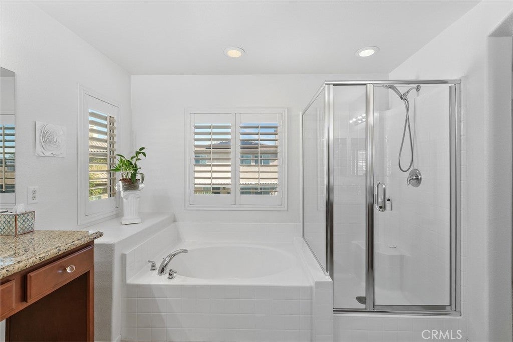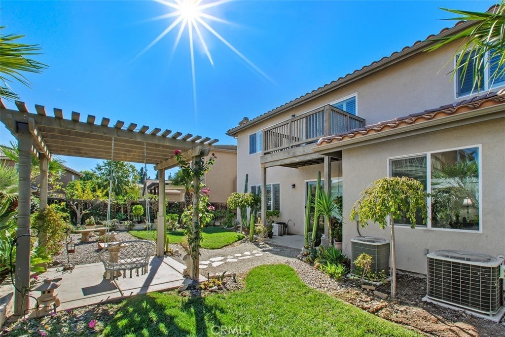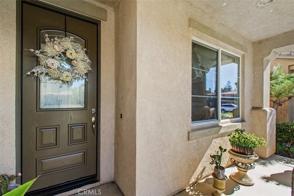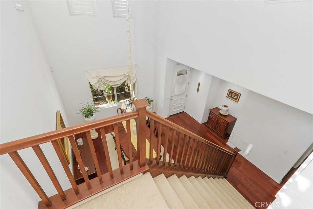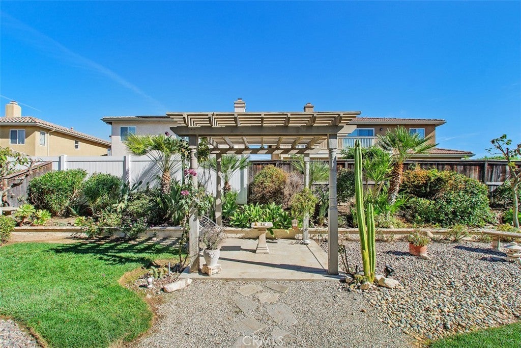 Welcome to this beautifully cared-for Winchester home tucked away on a peaceful cul-de-sac. From the charming curb appeal to the elegant front entry, every detail reflects pride of ownership. Inside, soaring ceilings in the formal dining area and rich hardwood floors throughout the main level create a warm, inviting atmosphere. Plantation shutters, a cozy living room fireplace, and abundant natural light add to the home’s comfort and style. The spacious kitchen features an island, granite countertops, and a water purifier under the sink. The eat-in area opens to a lushly landscaped backyard—ideal for outdoor dining and relaxation. A downstairs bedroom/office, convenient half bath, and separate laundry room complete the first floor. Upstairs, the primary suite offers a private retreat with double-door entry, a sitting area leading to a balcony, and a luxurious bath with dual vanities, a soaking tub, separate shower, bidet, and a large walk-in closet. Two additional bedrooms, each with walk-in closets, share a hallway bath with dual sinks. A built-in workstation provides the perfect spot for study or remote work. Enjoy a beautifully landscaped backyard with fruit trees, cactus garden, and a wooden pergola. Additional highlights include a 3-car tandem garage, newer water heater, solar panels, whole-house water softener, dual AC units, and a 5,662 sq. ft. lot offering ample outdoor space. This home combines elegance, functionality, and energy efficiency—ready to welcome its next owner.