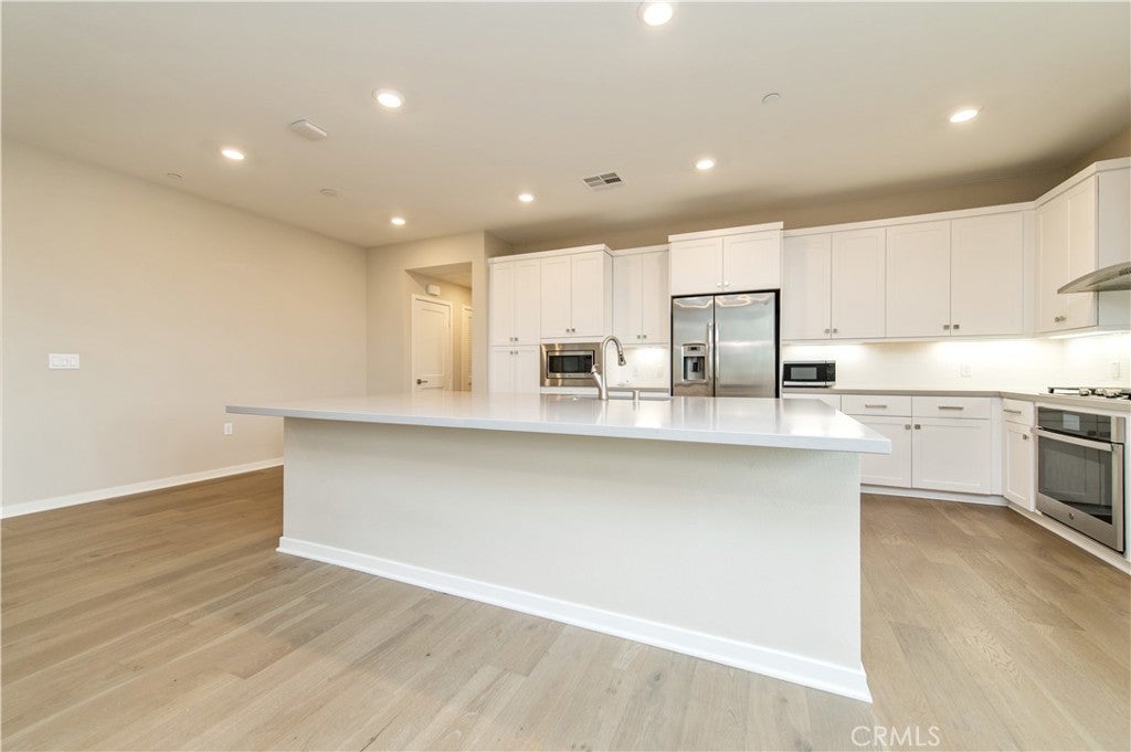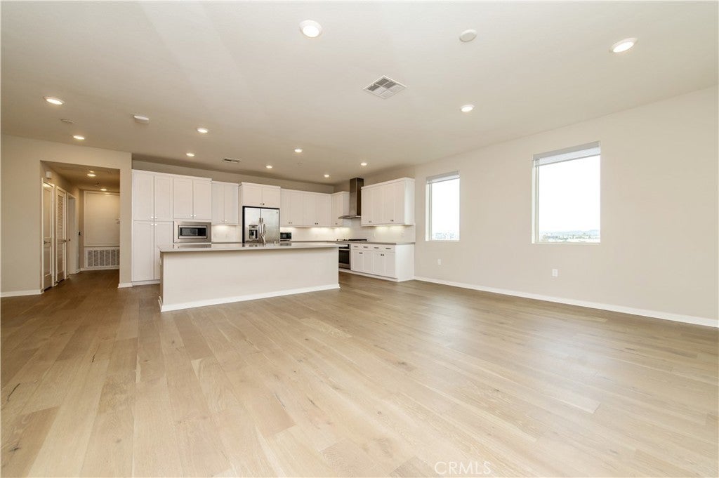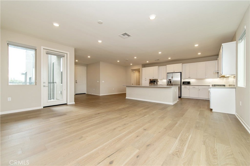 Experience contemporary elegance in this top-floor, exceptionally spacious 2-bedroom, 2-bath condominium situated in the vibrant heart of Irvine’s financial district. The open floor plan features a generous family great room that extends to a large private balcony, providing picturesque views of the lush courtyard. The gourmet kitchen boasts a sizable quartz-topped island, upscale stainless steel appliances, and ample cabinetry for all your storage needs. A conveniently located laundry closet includes a washer and dryer. The unit showcases designer-selected laminated wood flooring in the living areas and upgraded carpeting in the bedrooms. Both the master and secondary bedrooms offer their own en-suite bathrooms for added convenience. The property includes a private tandem two-car garage on the first level, equipped with an EV charging outlet to accommodate electric vehicles. Residents of Central Park West enjoy resort-style amenities such as a clubhouse, state-of-the-art fitness center, outdoor spa, yoga studio, pools, as well as outdoor sports parks, playgrounds, and pickleball courts. The location provides exceptional connectivity, with easy access to I-405 and proximity to premier shopping and entertainment destinations including Newport Beach’s Fashion Island, Irvine Spectrum, South Coast Plaza, and Laguna Beach.