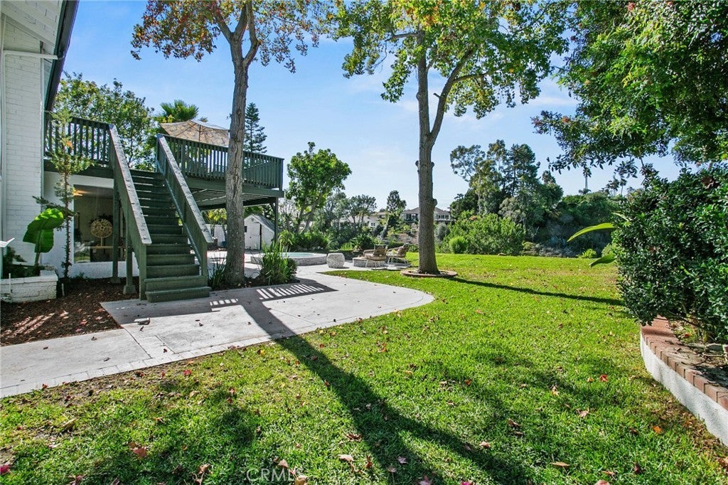 Turnkey Laguna Niguel single-family home with 4 bedrooms, 3.5 bathrooms, and 2,063 sq ft on a 13,926 sq ft lot. Open-concept main level with dual primary bedrooms, one opening to an oversized view deck with stairs leading to the yard and spa. Chef’s kitchen features quartz waterfall countertops, soft-close white cabinets with gold hardware, and new Samsung gas range. Interiors shine with luxury vinyl plank flooring, gas fireplace, decorative wood paneling, and abundant natural light. Outdoors, enjoy private jacuzzi, an oversized view deck with yard access, RV/boat parking, and mature landscaping. Minutes from South OC beaches, Dana Point Harbor, and Laguna Niguel Community Center. Rare dual-primary layout with views—perfect for multigenerational living, families, or empty nesters seeking privacy and turnkey living. This lot is PRIVATE and Quiet and optimal for adding an ADU or enlarging the main level. No streets are visible from the yard and noise levels are minimal and the lot elevation optimizes the views and breezes. This home is not only remodeled but the main components such as roof, HVAC, ducting, electrical panel, water heater are in newer condition to provide peace of mind. Low tax rate, No HOA and no Mello Roos.