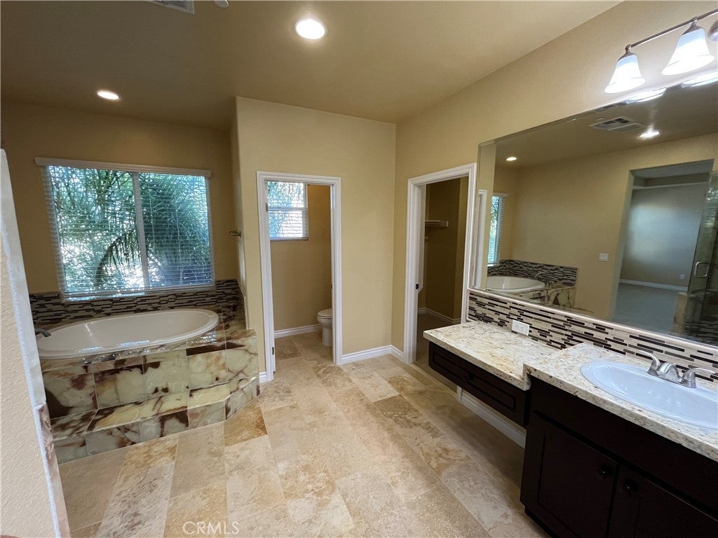 Elegance and comfort come together in this stunning 5-bedroom, 4-bath home. The gourmet kitchen is an entertainer’s dream, featuring a large center island, sleek granite countertops, and premium Stainless Steel GE Monogram appliances—including a 48” 6-burner cooktop, double ovens, dishwasher, and microwave. The open-concept design flows seamlessly into the spacious family room, complete with a cozy fireplace and an extended wet bar, ideal for hosting gatherings. The living room offers an additional retreat with a 42” corner fireplace and beautifully crafted French doors that fill the space with natural light. The private primary suite impresses with coffered ceilings, its own fireplace, a generous walk-in closet, and a luxurious spa-inspired bathroom. Upstairs you’ll find three additional bedrooms—one with an en-suite full bath and two connected by a Jack-and-Jill bathroom. Recessed lighting enhances the home throughout, while the formal dining room showcases an elegant coffered ceiling. A main-level bedroom and bathroom provide excellent flexibility for guests or multi-generational living. Additional features include a laundry room with a sink and a home security system. The home is conveniently located near shopping, dining, award-winning schools, and easy freeway access. Owner pays for gardener; refrigerator included. Pet policy available upon request. One-year lease term. Experience refined living at its finest.