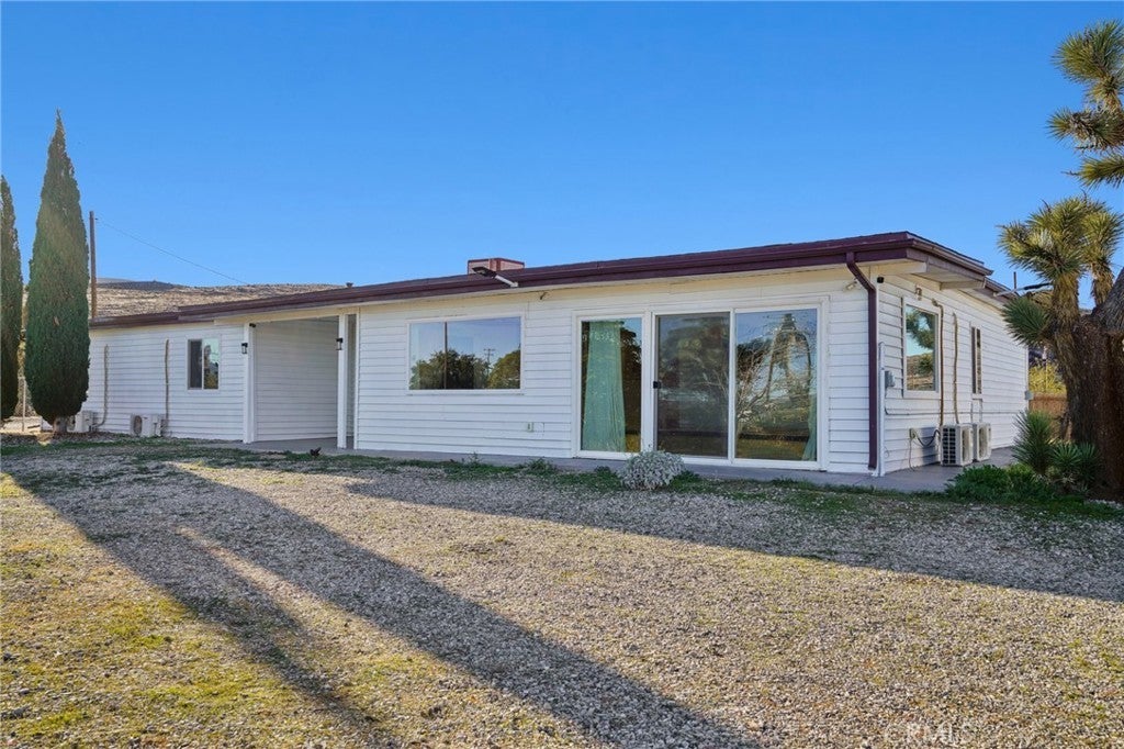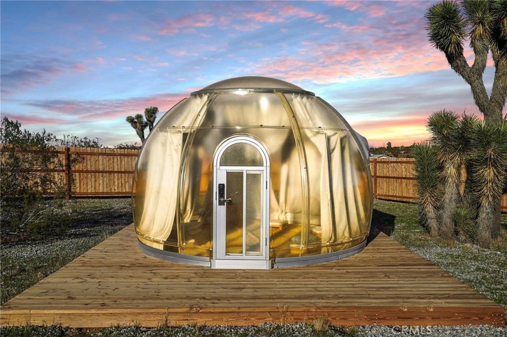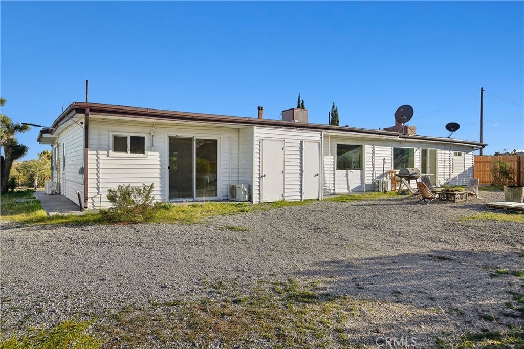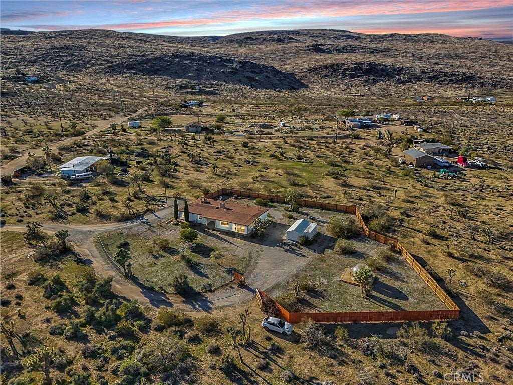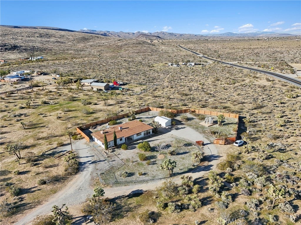 Welcome to 56676 Sunset Drive — a beautifully remodeled desert retreat set on 1.88 acres in the tranquil Yucca Mesa area. Enter through a custom painted wooden gate. This open and airy home features spacious living with over 1700 sq ft of living space, a yoga/ meditation room or potential bedroom, and a cozy family room centered around a masonry fireplace with a pellet stove. The updated kitchen offers new cabinetry, flooring, and stainless steel appliances, while a dedicated yoga and meditation room opens to peaceful desert views. Outdoors, enjoy expansive entertaining areas with new gravel patios, a firepit, and watch the stars in the stargazing dome — the perfect spot to unwind beneath the desert stars. The property also includes energy-efficient AC mini splits, a long private driveway, and a fully fenced yard for privacy. Conveniently located minutes from town and Joshua Tree National Park, this home blends comfort, creativity, and opportunity, with flexible zoning for potential business or industrial use.
