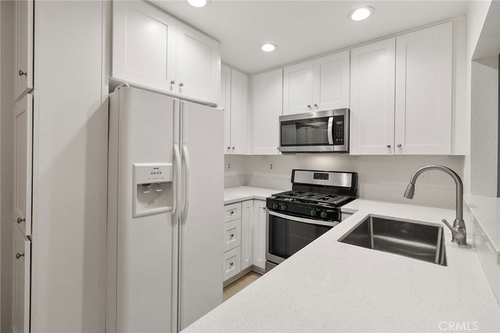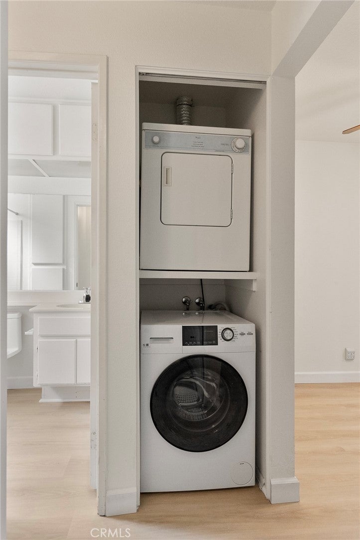 TWO BED AND TWO BATHS UNIT LOCATED IN THE DESIRABLE LAS FLORES COMMUNITY! Step inside and immediately notice the open and airy living spaces, highlighted by large windows for exceptional natural light. The entire property has been upgraded with vinyl wood flooring. The open-concept features the living room, kitchen and dining areas connected, perfect when entertaining guests. The updated kitchen includes newer stainless steel microwave, dishwasher, stove and an abundance of cabinetry for storage. Two sizeable bedrooms and bathrooms with the stacked washer and dryer conveniently located inside. Property includes 1 covered carport space (#55) close to the unit with ample street parking available. The amenities give access to a community pool, spa, BBQ are and more. Conveniently located near many shops, restaurants, and markets.