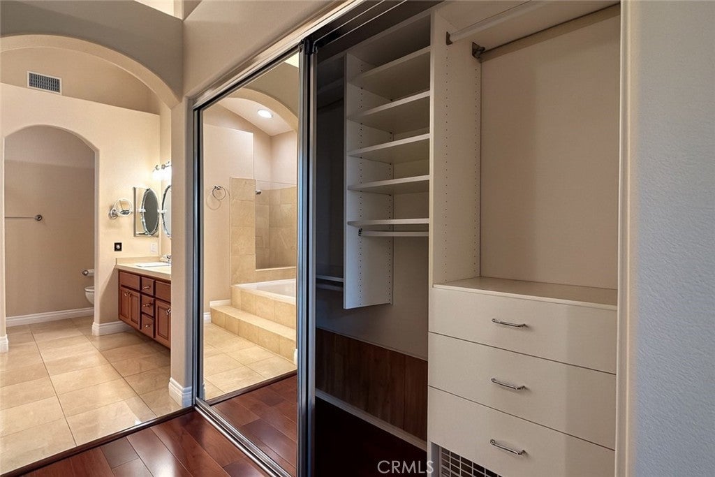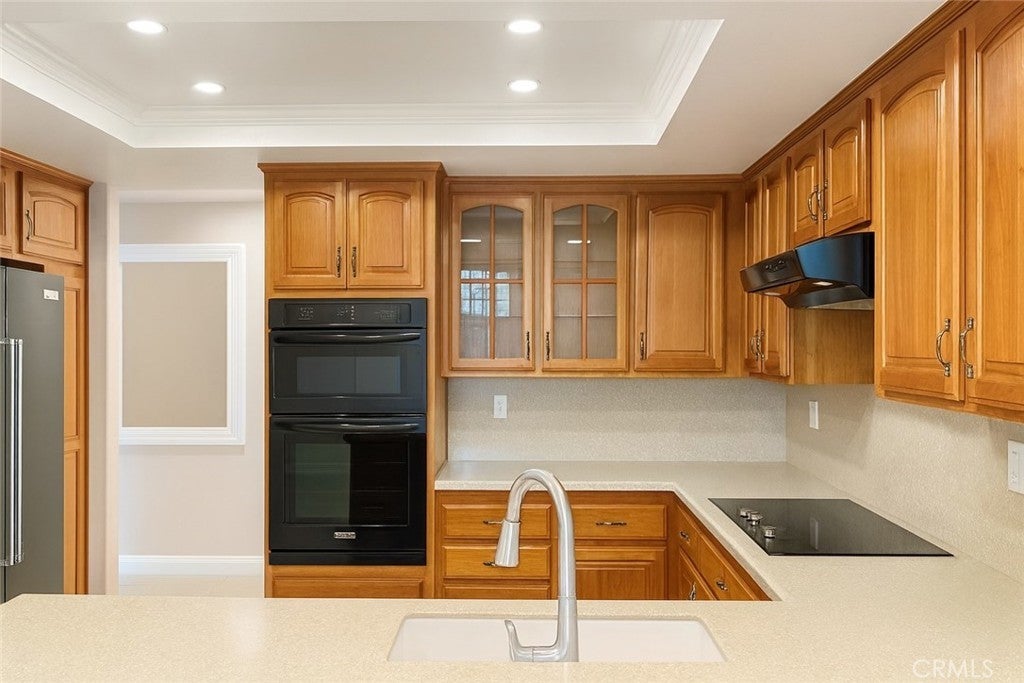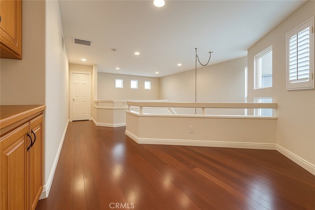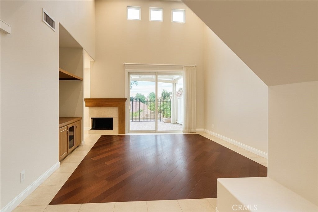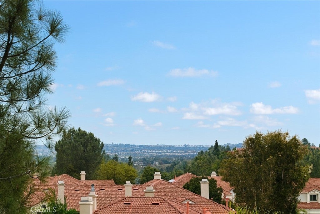Welcome to this beautifully maintained California Renaissance home offering three bedrooms, three bathrooms, a two car attached garage, and approximately 1640 square feet of light filled living space with truly sweeping panoramic views. Step inside to an inviting entry that immediately feels bright and open. Just off the entry is a versatile enclosed den that works perfectly as a home office, guest room, or third bedroom. A full downstairs bathroom sits nearby and features an updated vanity and a walk in shower with a clean frameless glass enclosure. The main living room opens beautifully as you move further in, with soaring two story ceilings and walls of windows that bring in natural light throughout the day. The dual sided fireplace anchors the space and adds warmth and character. Around the corner is the kitchen which has rich cherry cabinetry, KitchenAid black stainless appliances, and a recently updated refrigerator. The kitchen flows easily into the dining room which enjoys views of the surrounding hills. Sliding doors lead to the covered patio and outdoor area which offer stone hardscape, mature landscaping, and beautiful open space behind the home. This is a wonderful spot for morning coffee or evening gatherings. Also on the main level is a separate laundry room with washer and dryer included and built in cabinetry. Upstairs you will find an airy loft that is ideal for an additional work area or a quiet reading space. The ensuite second bedroom has its own full bathroom and a walk in closet with built in organizers. The primary suite sits at the back of the home and features vaulted ceilings, two closets including a walk in, and a private balcony that takes in the incredible views. The primary bathroom offers dual sinks, a large vanity, a separate soaking tub, and a walk in shower finished in marble with a frameless glass enclosure. The attached two car garage includes extra storage and an epoxy coated floor. Notable upgrades include PEX repiping, newer HVAC, dual glazed windows, a whole house water filtration system, and thoughtful lighting updates throughout. The California Renaissance community features a resort style pool and spa and beautifully maintained greenbelts. The location is one of the most convenient in Aliso Viejo with close proximity to the 73 toll road, the 133 scenic route to Laguna Beach, highly regarded schools, hiking and biking trails, and the Aliso Viejo Town Center with shopping, dining, and entertainment.