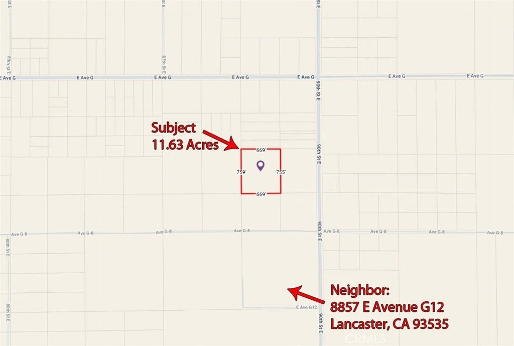 Discover the potential of this expansive 11.63-acre parcel, APN: 3374-030-002, Los Angeles County, located near paved 90th Street East and Avenue G-8 in the Roosevelt area of Northeast Lancaster. Surrounded by large, established farms, this property offers a wide-open setting ideal for agriculture, recreation, or long-term investment. Private roads are planned for 87th Street, creating future access opportunities and enhancing long-term value. With level terrain and proximity to nearby paved roads, the land provides a versatile canvas in a growing and opportunity-rich region of the Antelope Valley. Whether you’re looking to expand farming operations, create a rural retreat, or secure land for future development, this generous acreage delivers space, privacy, and strong potential. Please use neighbor's address, 8857 E Avenue G12, Lancaster, CA 93535 to get to the lot, GPS SE corner coordinates: 34.728741, -117.972087.