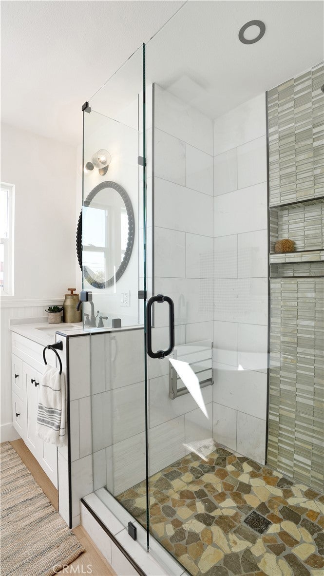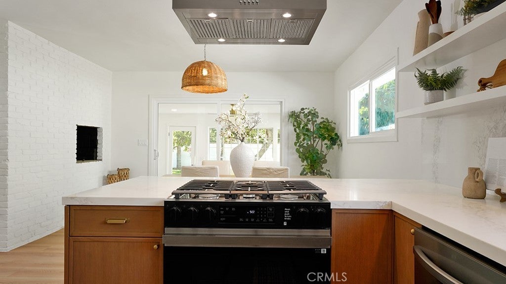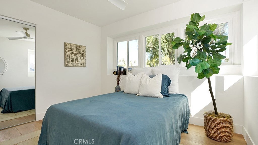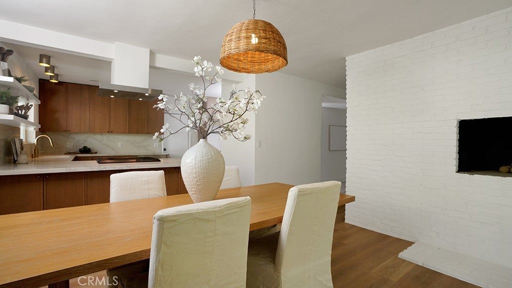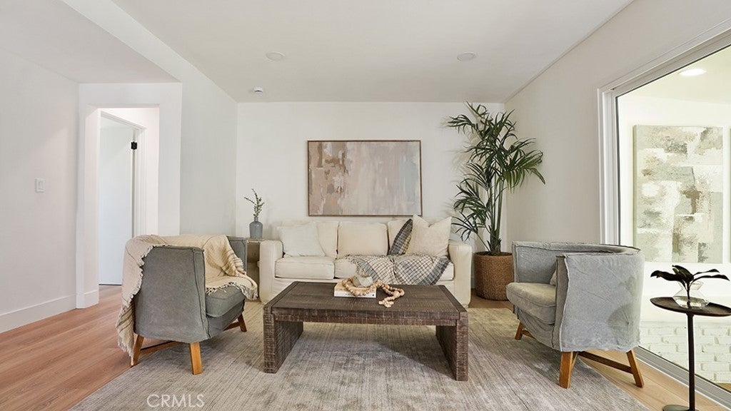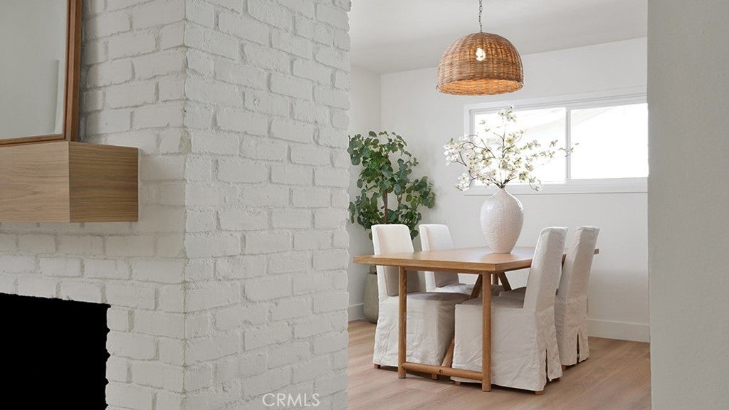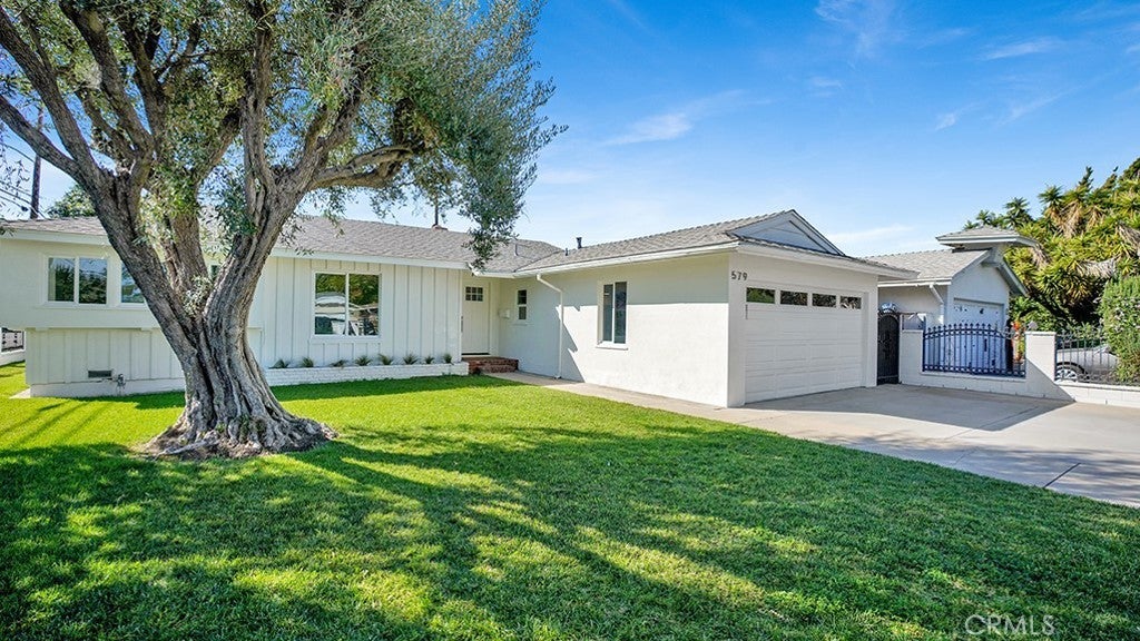 579 N Century Dr, Anaheim – A Reimagined Mid-Century Masterpiece Arrive in style through a private gated driveway poured in crisp, new concrete, framed by lush, manicured landscaping that sets the tone for the luxury within. A bold new front door with sleek matte black hardware, a smart video doorbell, and a sculptural designer light fixture welcome you home. Step across the threshold onto wide-plank white oak luxury vinyl flooring that flows seamlessly beneath LED recessed lighting and fresh designer paint. Every detail is elevated: tall new baseboards, refined door casings, and modern matte black hardware throughout. The heart of the home unfolds in an open-concept living space anchored by a striking double-sided wood-burning fireplace (with gas hookups for instant ambiance). Oversized dual-pane windows and new sliding glass doors flood the room with California sunlight, drawing your eye to the sun-drenched sunroom – an entertainer’s dream with panoramic garden views and effortless indoor-outdoor flow. The chef’s kitchen is a study in elevated design: rich oak panel cabinetry, gleaming quartz countertops and full-height backsplash, a deep quartz farmhouse sink, and custom floating shelves. Top-tier appliances include a luxury gas range, paneled dishwasher, built-in microwave, and sleek range hood – all centered beneath a statement chandelier in the adjacent dining area. Retreat to the spacious primary suite, where a spa-inspired en-suite awaits: designer porcelain tile shower, high-end fixtures, and soft-glow lighting that transform routine into ritual. Two generously sized guest bedrooms feature new ceiling fans and custom closet systems, while the hall bathroom indulges with an oversized soaking tub and artisan tilework. Outside, the private backyard offers a serene escape, accessible via new sliding glass doors from both the sunroom and living areas – perfect for al fresco dining or quiet mornings with coffee. Every inch of 579 N Century Dr has been meticulously reimagined with timeless materials, thoughtful design, and uncompromising quality. This is not just a house – it’s your sanctuary of modern luxury in the heart of Anaheim