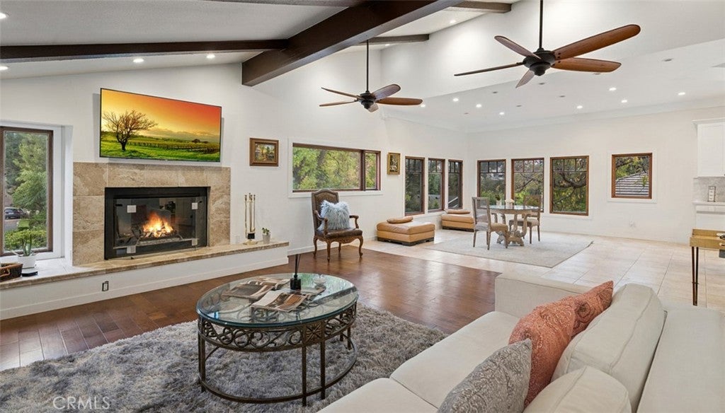 Enjoy the gracious charm of California ranch living in the Village of Coto de Caza! Welcome home to 31991 Via Pavo Real and its picture-perfect views. This home was constructed against the backdrop of the trails and natural beauty that was once Audubon Society land, and truly retains the feel of its pastoral roots. This 4-bedroom, 5-bath retreat is infused with natural light, beautiful architecture, and an open, airy ambiance; standout features include vaulted ceilings, exposed beams, hardwood and tile floors, two fireplaces, and floor-to-ceiling picture windows overlooking rolling hills and beyond. The fully remodeled kitchen offers a lovely view, elegant slab countertops, a Thermador range, large island. The master bath was fully remodeled. The upper great room brings living and dining together, is perfectly suited for entertaining. The first three bedrooms are conveniently located on the entry level, and the master bedroom is located on the main floor. Looking out over the wilderness, this home offers pristine views of golden hillsides, reminiscent of an earlier time. Deer, horses, and quail are the fabric of this pastoral lifestyle. Coto is a guard-gated community and one of Orange County's most prestigious, with two country clubs, golf courses, and equestrian facilities. Within minutes of shopping, restaurants, and all that Orange County has to offer. Single-fa