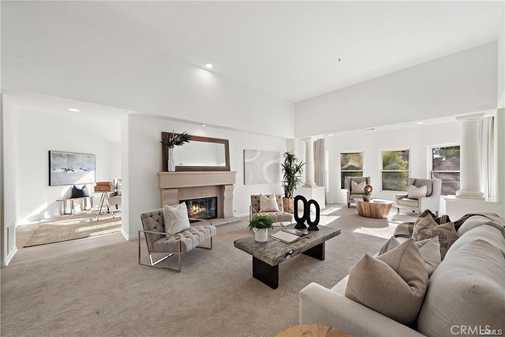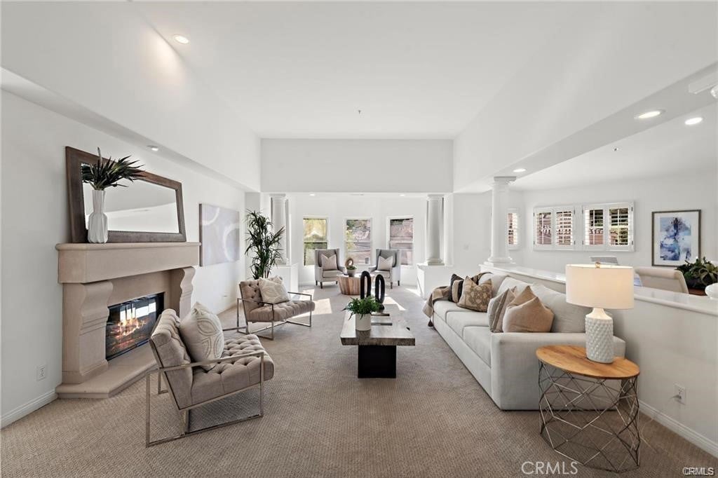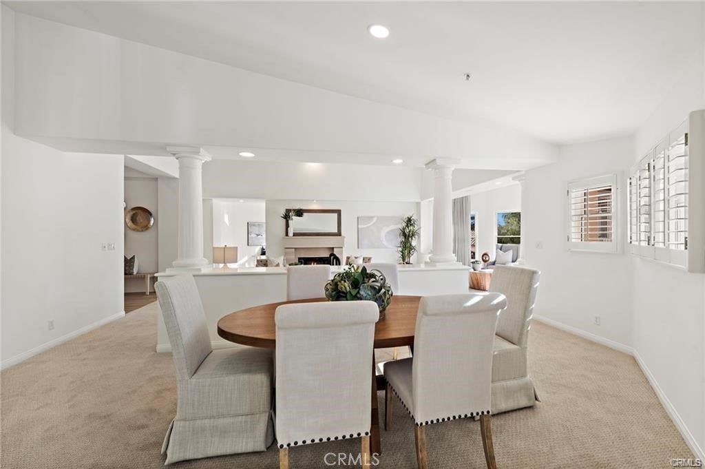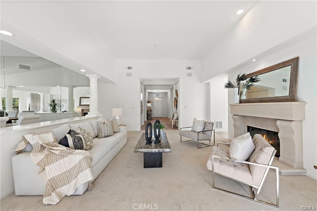 Rare single-level villa in the guard-gated community of Marbella Country Club. One of only twelve homes of its kind, this 2,700 sq. ft. residence offers soaring ceilings, abundant natural light, and an open layout. Recently updated with new paint, brand-new windows, LED lighting, plank flooring, and designer carpet. The spacious living room features a central fireplace and opens to a bright reading alcove and dining area. The large kitchen includes a center island, breakfast nook, counter seating, stainless steel KitchenAid appliances, and excellent storage. The expansive primary suite offers a sitting area with fireplace, private deck, and serene golf course/hillside views, plus a spacious bath with soaking tub, step-in shower, dual vanities, and oversized walk-in closet. Additional features include a guest suite with ensuite bath, den/office, inside laundry, and an attached two-car garage with direct access. Newer furnace, AC condenser, and water heater. Residents may join Marbella Golf & Tennis Country Club for access to golf, tennis, fitness, pool, and dining. Conveniently located near downtown San Juan Capistrano, the new River Street district, dining, shopping, and trails.