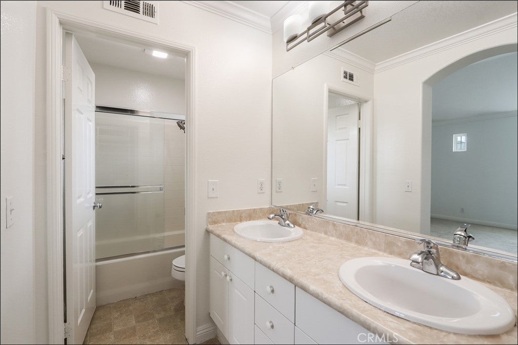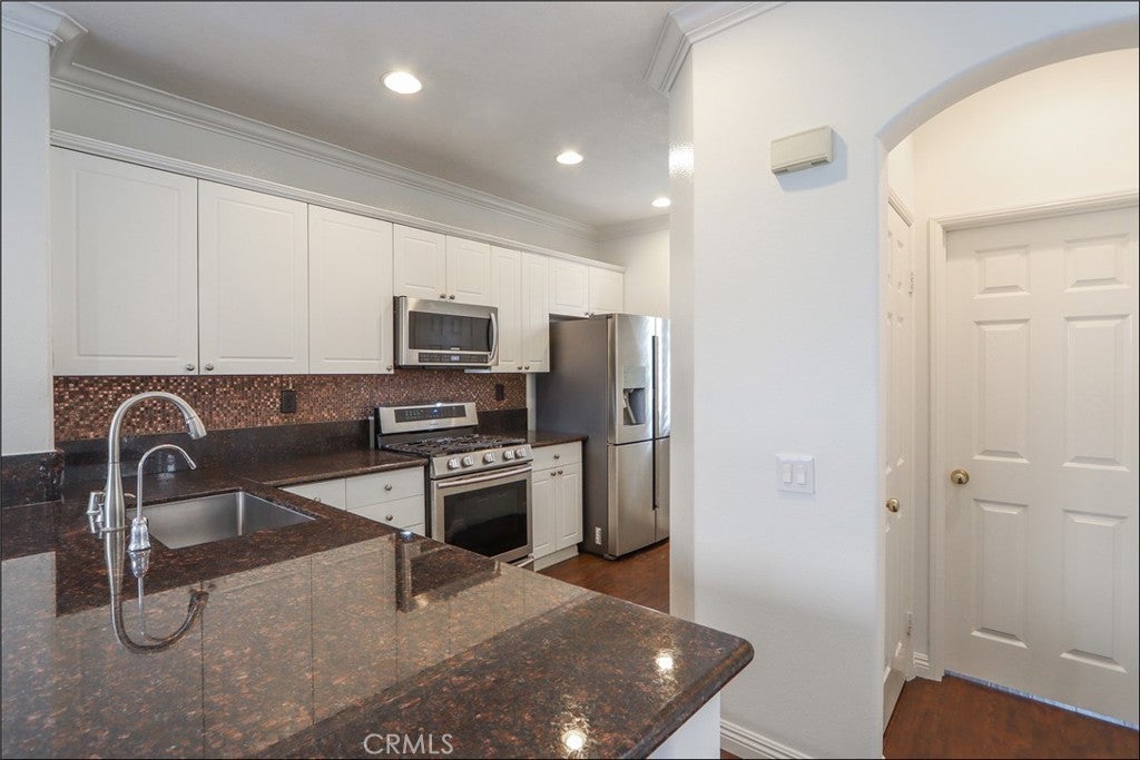 HIGHLY SOUGHT AFTER SOLEIL COMMUNITY, DETACHED HOME WITH 2 CAR GARAGE AND DRIVEWAY AND UPGRADES! Perfectly situated on a cul-de-sac , this detached home offers a living and dining room which opens to the kitchen with upgraded granite countertops, stainless steel appliances and large pantry. Main floor also featuring a powder room with upgraded vanity and fixtures and direct access to the two car attached garage with epoxy flooring. Sun drenched staircase leading to the spacious second story offering a conveniently located full size laundry area at the bedroom level with washer and dryer included, spacious master suite with walk-in closet featuring built-in closet organizers, en-suite bathroom featuring a large vanity with upgraded countertop with dual sinks, tub and shower with glass enclosure and upgraded fixtures. 2nd and 3rd bedrooms and full 2nd bathroom complete the second story. Upgraded flooring ab baseboards, upgraded fixtures and plantation shutters. Rear yard with brick accented patio and planters. All this plus, highly sought after schools, excellent proximity to Aliso Viejo Town center with shops, restaurants and theaters, easy toll road (73) and beach access via 133 and nearby hiking, biking and nature trails!