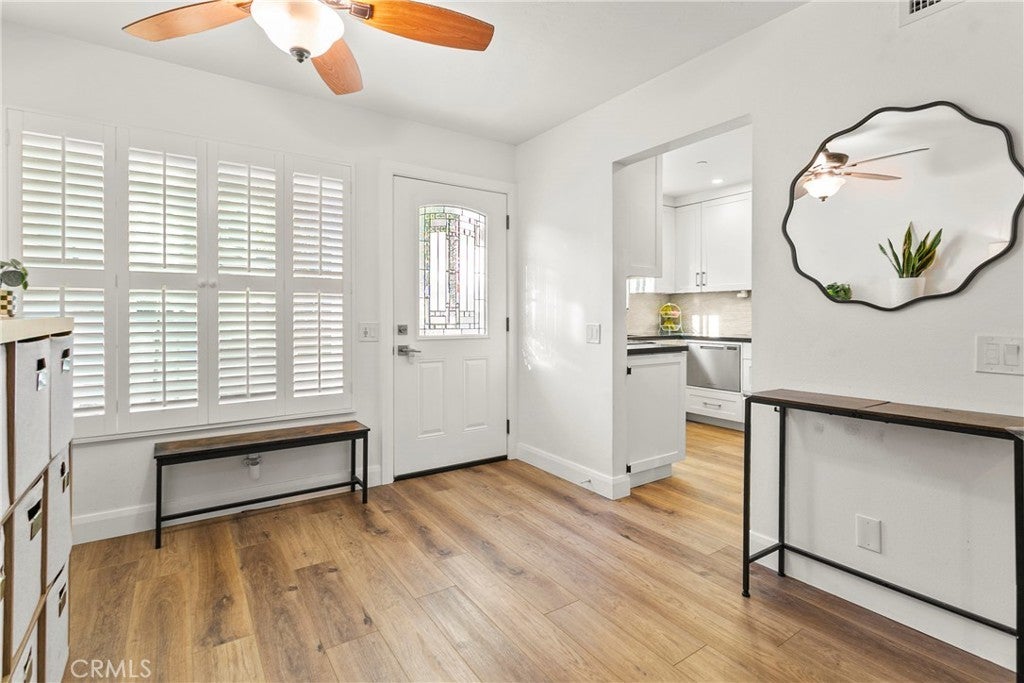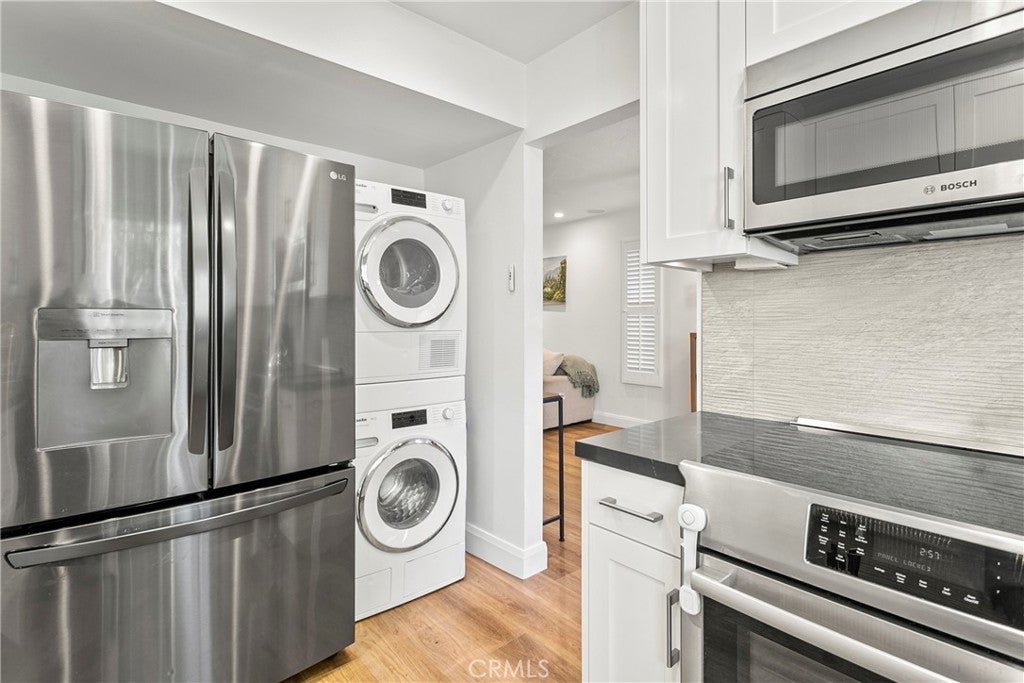 Welcome to this thoughtfully UPGRADED TWO-STORY HOME in the desirable Morningside Community of Aliso Viejo. Sitting on a CORNER LOT with peaceful GREENBELT VIEWS, this move-in ready home has 3 bedrooms, 1.5 baths, and 1,174 square feet of living space designed to meet your needs. Inside, you’ll find a warm, welcoming layout with LUXURY VINYL PLANK FLOORING, PLANTATION SHUTTERS, modern ceiling fans, and sleek LED RECESSED LIGHTING throughout. The REMODELED KITCHEN is both stylish and functional, featuring custom cabinetry, updated counters, designer lighting, remote controlled window shade, and top-tier appliances including a Bosch microwave and stove, Fisher & Paykel dishwasher, LG refrigerator, and Miele stackable washer/dryer. The upstairs full bath has a TILED WALK-IN SHOWER with a frameless glass enclosure, a custom vanity, and thoughtful storage. The half bath downstairs features a space-saving POCKET DOOR, stylish vanity, and fixtures, with towel bars that double as grab bars for added safety. All three bedrooms have been updated with thoughtful touches like UPGRADED MIRRORED CLOSET DOORS in the primary suite and CEDAR-LINED CLOSETS in the secondary rooms. A dedicated media space includes BUILT-IN SURROUND SOUND for movie nights or game days. The sleek GLASS PANEL STAIR RAILINGS add a modern edge, and the home has been REPIPED for peace of mind. Step outside to enjoy LOW-MAINTENANCE BRICK PATIOS in the front and back, perfect for kids, pets, or your morning coffee. Planters and greenery add privacy and charm, while a TANKLESS WATER HEATER, newer DOUBLE-PANE WINDOWS AND SLIDERS, a Lennox HVAC system, WHOLE HOUSE FAN, and pull-down attic stairs round out the home’s many practical upgrades. The neighborhood has parks nearby and a grassy open space just beyond the backyard fence. A hidden sidewalk trail offers a scenic shortcut to Target and other local favorites. You’re minutes from Costco, Sprouts, Stater Bros, and all the everyday essentials, plus local gems like Soka University trails, Laguna Niguel Regional Park, and community events at Aliso Viejo Town Center. This home is ready for you… welcome home!