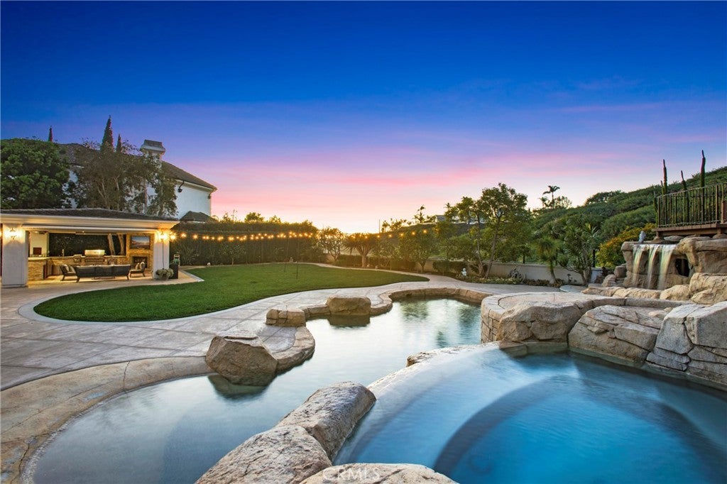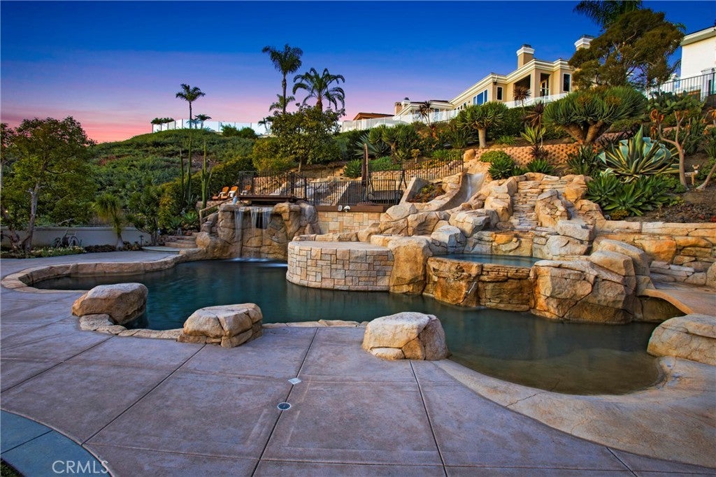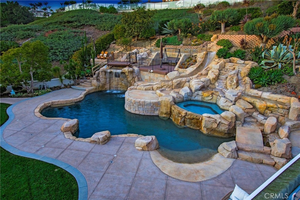 Truly and extraordinary opportunity for this outstanding "Ocean Ranch" custom residence located on a spectacular 34,000sqft, cul-de-sac location (only 4 homes reside on this cul-de-sac) in the coveted "Guard Gated " community of Ocean Ranch in Laguna Niguel. This 4 bedroom, 4 1/2 bath approximate 4700sqft residence contains what could easily be one of the most unique and "Disney Like" backyards in South Orange County. This custom residence was " taken down to the studs" approximately 12yrs ago and at that time was renovated with all new electrical, all new plumbing, 28 solid core doors, new hardware, and a host of extraordinary amenities. The 2-story entry way of this home is truly inviting as well as extremely 'light & bright'! The existing residents during their ownership have invested approx $1 million in this residence "both inside and outside" during their ownership. Most recently the entire interior has been repainted, & new LED lighting installed throughout. Additional features include a main floor bedroom with its own ensuite bath, as well as a main floor separate private office. The floor plan, which truly demonstrates a very 'open & spacious' design inclusive of a breakfast nook area, breakfast bar, built in wet bar, walk in pantry, and an exceptional flow & access to the rear yard. Additionally, a spacious main floor utility room which can also be used for 'additional crafts' & storage with direct access to an oversized 3 car garage. The incredible 'park like' backyard contains a saltwater pebble tech pool/spa boasting a 30 ft waterfall, 10 ft diving cliff and 38ft water slide!! The outside-covered gazebo garnishes a full kitchen, built-in TV, heaters & fireplace. The Ocean Ranch Community contains its own community pool/ spa and sport court facilities. Located within walking distance to St Anne's Elementary School, the Ocean Ranch Shopping Plaza inclusive of a Cinepolis Movie Theatre, Trader Joe's & numerous dining establishments. Minutes to both the Ritz Carlton & Waldorf Resorts, as well as the world-renowned Salt Creek beach with its incredible surfing breaks. Equally close is the Dana Point Harbor & The Lantern District again containing numerous Retail & Dining Experiences! This outstanding residence has not been offered on the market for the last 15 years! This is truly a 'Must See' custom residence in Ocean Ranch with outstanding proximity to our Pacific Ocean & incredible coastline. Pride in ownership is most certainly evident!!