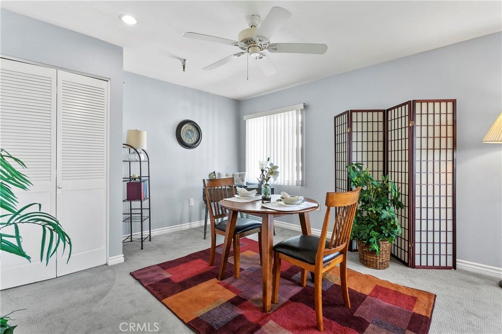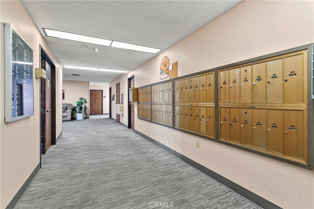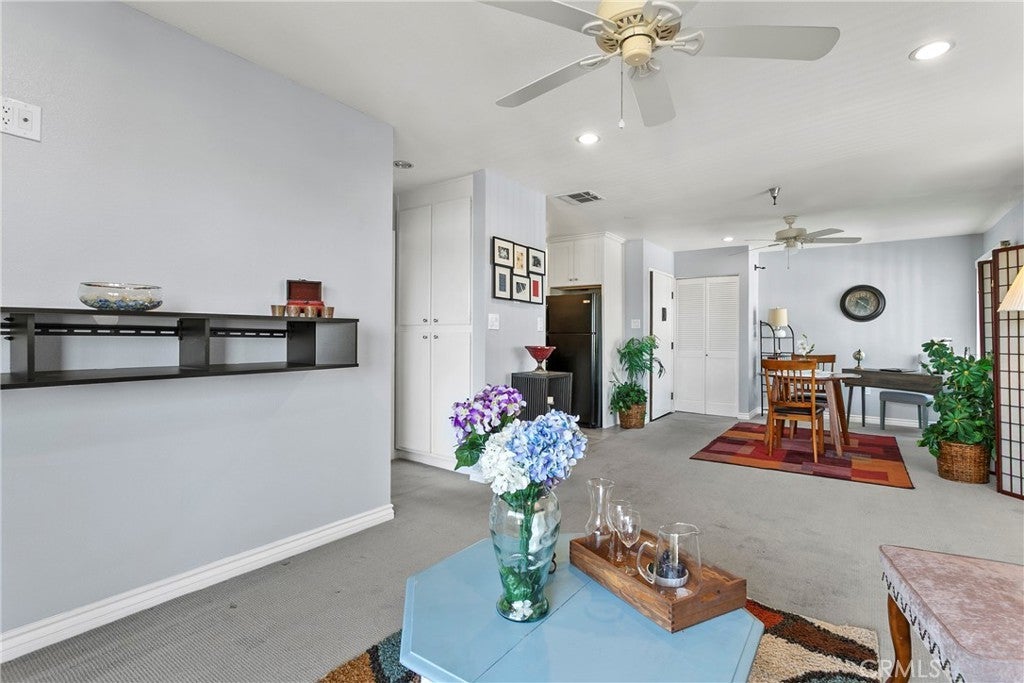 This is the most unique top floor unit in the 55+ community! The extra large corner location is full of light from the living room windows and the full wall slider that has a view looking south east. Enter your private oasis from the hallway that is steps away from the elevator. The entertainment area has a storage closet and mounted shelving. The dining area with another ceiling fan is centered to the remodeled kitchen with recessed lighting, white cabinetry, stone counter tops, electric range, dishwasher, microwave and refrigerator. The bedroom features a ceiling fan and full wall mirror slider closet. The remodeled bathroom has a vanity with stone counter and tub/shower combination with glass doors. Additional storage is in the linen closet between the bedroom and bathroom. The community laundry is on the same floor just around the corner. Access to this active community building for guests is from the call box intercom activated front door to the welcoming lobby entry where the mailboxes are. The community room features a fireplace, and multiple seating areas to relax with other residents. Here you can find a lending library, puzzles, and games for entertainment. This condo is assigned a covered parking space with storage in the gated parking lot. All of this within walking distance from Five Points Shopping Center with shops, a bank, groceries, dining, and other services. The famous downtown area of Huntington Beach, the pier, and sandy beach are just a short drive away. Purchases must be in CASH due to the land Lease that expires in 2035. This condo can be home as a full time home, vacation retreat or investment property. You don't want to miss it.