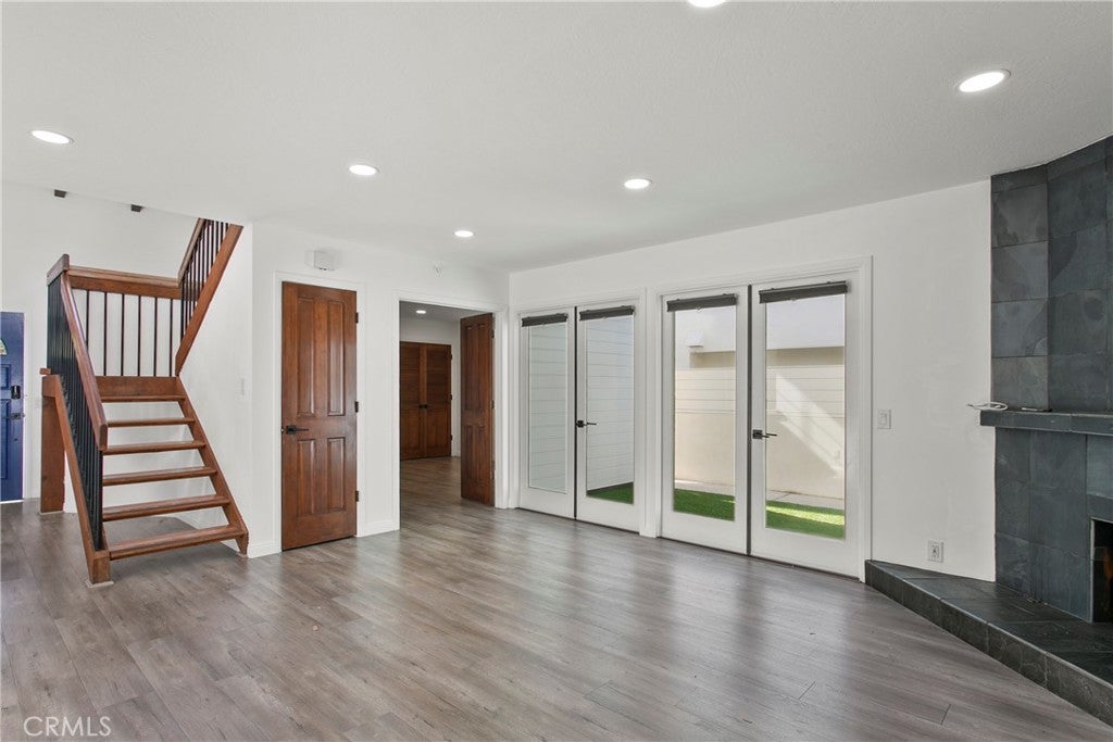 Beautifully remodeled front unit in Upper Corona del Mar Village. Private (it's the only thing upstairs) upstairs primary suite with cedar lined closets, lots of windows, and a private deck. Primary suite bathroom has been remodeled and includes a walk-in shower. Lots of wood highlights surround this open space with a laminate floor. There's also a gas fireplace. Downstairs features two bedrooms with plenty of closet space, wood trim, laminate flooring. Front bedroom has a high ceiling and a separate entrance, perfect for a home office. Modern kitchen comes with stainless steel appliances, large refrigerator/freezer, dishwasher, gas stove/oven and built-in microwave oven. There's a private front patio, a side patio off the living and dining room (which also features a gas fireplace), and one space in an attached two car garage featuring a washer and dryer. Walking distance to Big Corona Beach, shopping, restaurants, pubs.