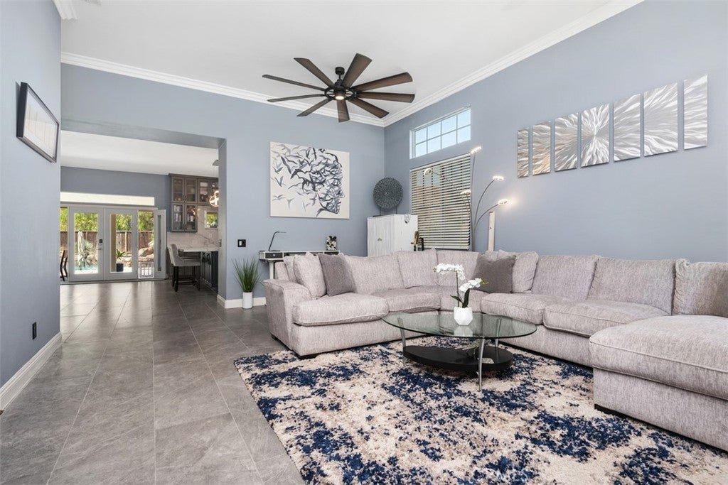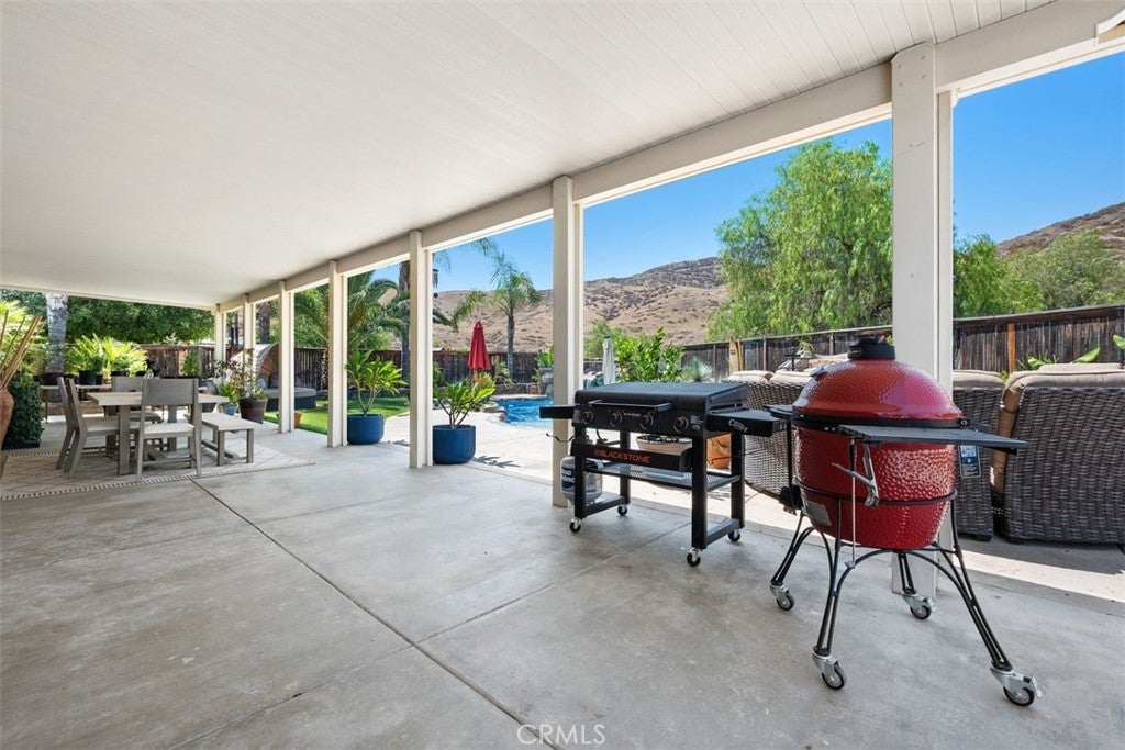 Welcome to an entertainer’s paradise nestled in a serene neighborhood with scenic mountain views. This beautifully maintained single-story residence offers the perfect blend of comfort, style, and resort-inspired outdoor living – with no HOA. This three-bedroom, two-bathroom home with a three-car garage also features a versatile fourth room, perfect for a guest bedroom, home office, playroom, or anything your heart desires. The flexible floor plan is designed to meet the needs of modern living while maintaining a warm and inviting atmosphere. Step inside to an open-concept layout filled with natural light, spacious living areas, and tasteful modern upgrades throughout. Whether you're hosting gatherings or enjoying peaceful evenings at home, this inviting design accommodates every lifestyle with ease. The showstopping backyard is a private oasis, featuring a sparkling saltwater heated pool with dual cascading waterfalls, a built-in spa, and tranquil mountain views. The expansive covered patio spans the entire length of the home, ideal for seamless indoor-outdoor living. Gather around the built-in fire pit under the stars, grill in the designated BBQ area, or unwind in the professionally landscaped yard complete with a thoughtfully designed garden path along the side. Sustainability and savings go hand in hand with solar panels and a Tesla Powerwall, offering energy-efficient living year-round. Lovingly cared for and move-in ready, this home effortlessly combines everyday comfort with luxury living—inside and out.