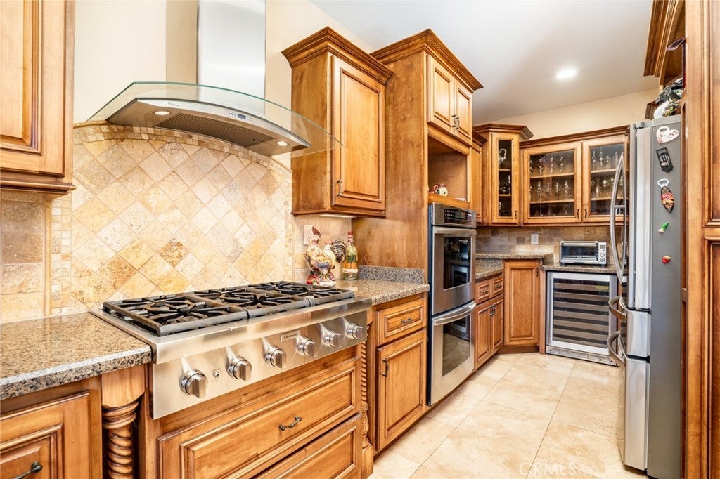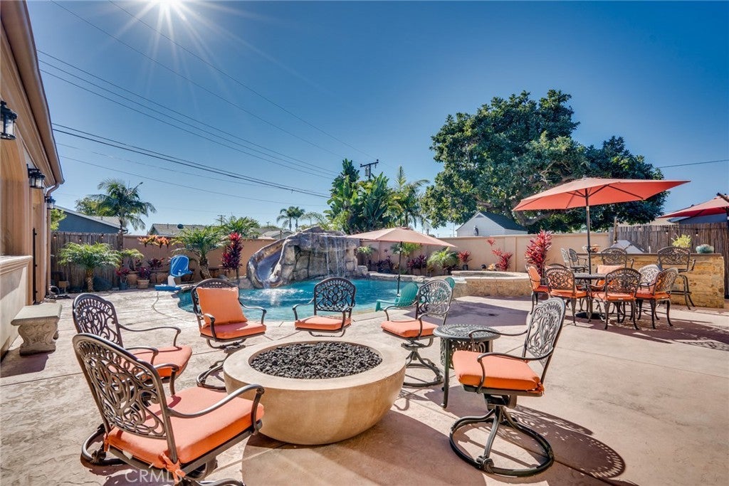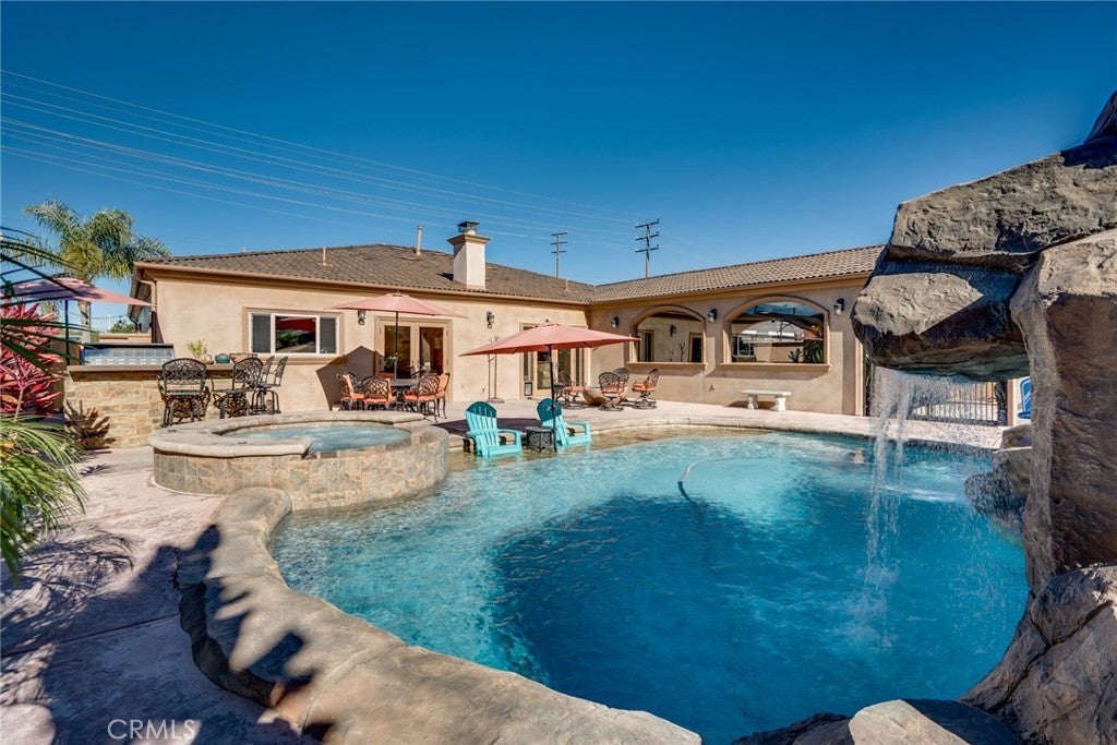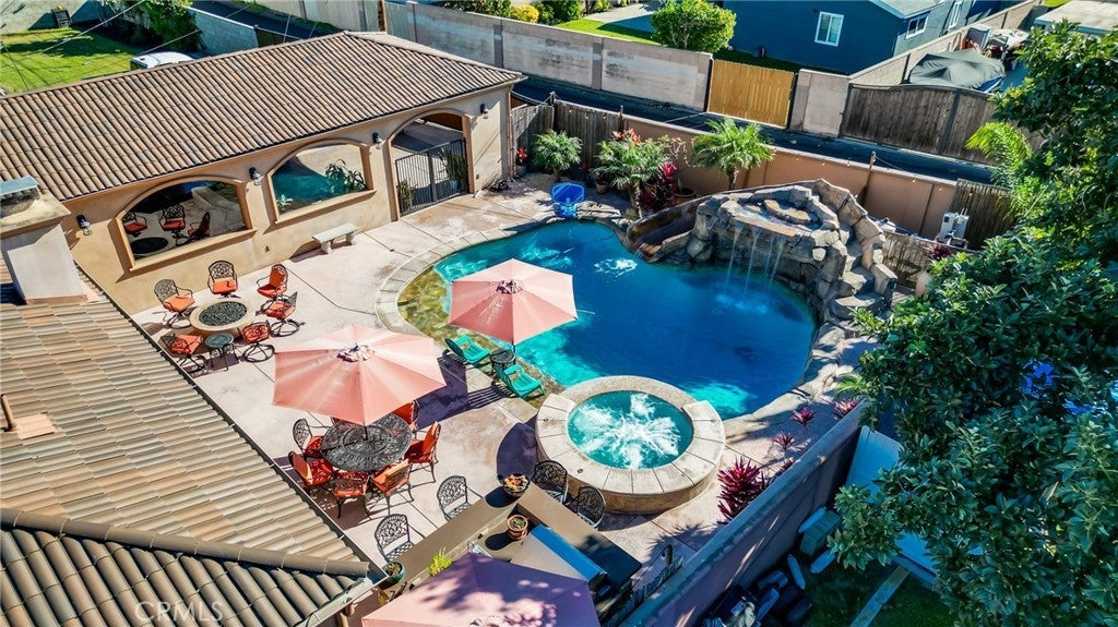THIS HIGH QUALITY 2008 CUSTOM BUILT 2,900 SQUARE FOOT SINGLE STORY HOME WITH HIGH CEILINGS AND TOTALY UTILIZED 7,684 SQUARE FOOT LOT WILL WOW YOUR CLIENT. WALK INTO A GRAND ENTRY WITH SPACIOUS OPEN FLOOR PLAN AND TRAVERTINE FLOORS. ENTERTAIN IN YOUR SPACIOUS LIVING ROOM WITH A CORAL REEF STONE FIREPLACE THAT SITS IN BETWEEN YOUR SPACIOUS FAMILY ROOM AND CUSTOM BUILT GOURMET KITCHEN WITH ISLAND AND GRANITE COUNTER TOPS, THERMADOR RANGE/CONVECTION OVEN, NEW THERMADOR 6 BURNER STOVE TOP, NEW THERMADOR DISHWASHER, 36 BOTTLE WINE CABINET, INDOOR LAUNDRY ROOM WITH SEPARATE ENCLOSED ATTIC FOR STORAGE. LIVING ROOM AND FAMILY ROOM FLOW INTO A BIG AND BEAUTIFUL TROPICAL PARADISE FEATURING POOL WITH WATERSLIDE AND WATERFALL GROTTO WITH SEATING UNDERNEATH. STONE BAJA REEF SHELF, SPA, BBQ ISLAND WITH TOP OF THE LINE HESTAN GRILL, OUTDOOR MINI FRIDGE AND FIREPIT. THERE'S MORE! A CUSTOM SMOOTH COAT INTERIOR FINISH 2 CAR GARAGE WITH COLORED STAMPED CONCRETE FINISH AND SPRAWLING WINDOWS LOOKING INTO YOUR PARADISE BACKYARD. ATTACHED INTERIOR SMOOTH COAT FINISH CARPORT FLOWS WITH AN OPENING TO THE BEAUTIFUL RESORT LIKE BACK YARD. PULL YOUR CARS OUT AND YOU CAN USE EXTRA LARGE SPACE AS A COVERED PATIO. ALL INTERIOR DOORS AND CASINGS FEATURE STAINED KNOTTY ALDER WOOD. ALL 4 BEDROOMS FEATURE GOOD CLOSET SPACE AND HARDWOOD FLOORS. LARGE MASTER SUITE WITH WALK IN CLOSET. HOME FEATURES 3 BATHROOMS . THIS THOUGHTFULLY DESIGNED HOME BLENDS QUALITY CRAFTMANSHIP WITH A TRUE INDOOR - OUTDOOR LIFESTYLE! SELLER AND BROKER HAVE AN ACTIVE DRE LICENSE