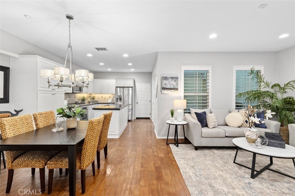 Welcome home to 26 Passaflora. This charming townhome in the desirable community of Ladera Ranch, is a perfect place to call home. This house is designed for comfort and style and Ladera possesses a community atmosphere that has a little bit of something for everyone. This incredible townhome has 3 bedrooms, 2.5 bathrooms, spread over 2200 sqft of living space, with an attached 2 car garage. As you enter this home you will be greeted by hard wood flooring throughout the first floor which is comprised of a living room, family room, half bathroom, dining area and a large kitchen. The oversized kitchen features plenty of storage, stainless appliances, lots of prep space on the large granite center island and direct access to your private patio. Upstairs, the oversized master suite has vaulted ceilings plus a walk-in closet with custom closets. There is also a loft in the master bedroom with is perfect for a workout room or home office. Down the hallway are two spacious secondary bedrooms with a Jack and Jill bathroom and the individual laundry room with a linen closet and utility sink. Additionally the home has recessed lighting. Ideally located, you are steps away from parks and close to neighborhood shopping, restaurants and award-winning schools. Ladera Ranch is a master planned community with 4 resort style clubhouses, multiple pools, parks, a skate park, water parks, dog parks, sport courts, hiking trails, playgrounds, plus a huge variety of community events!