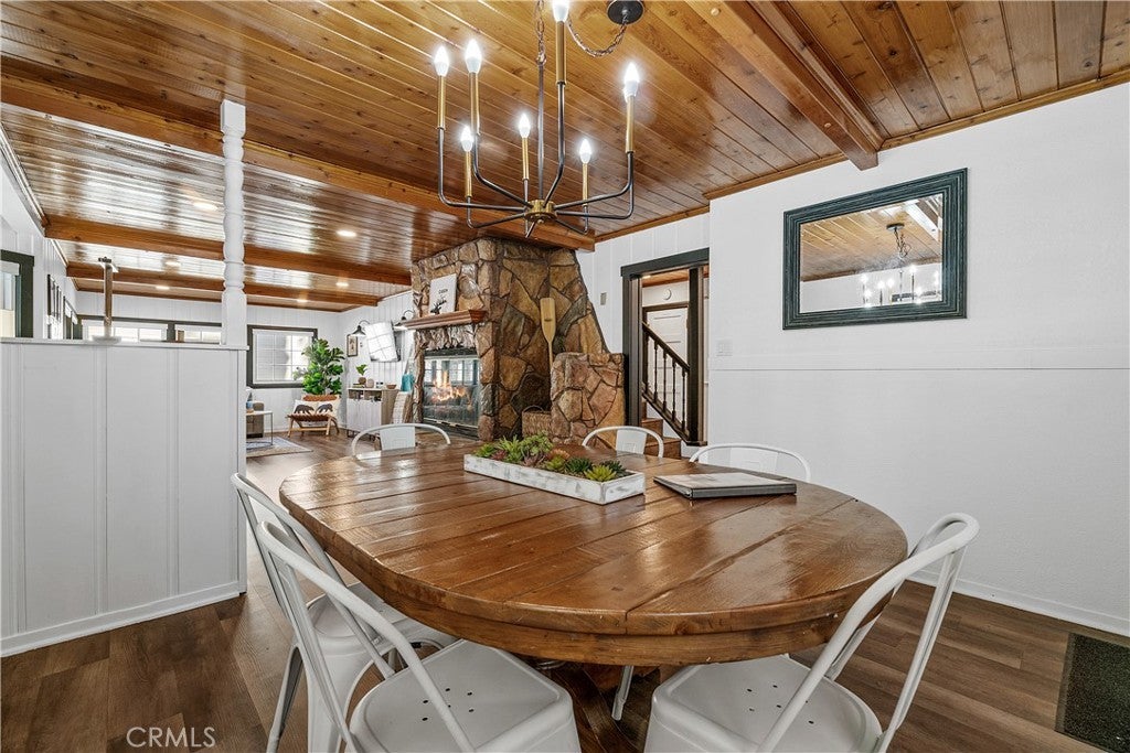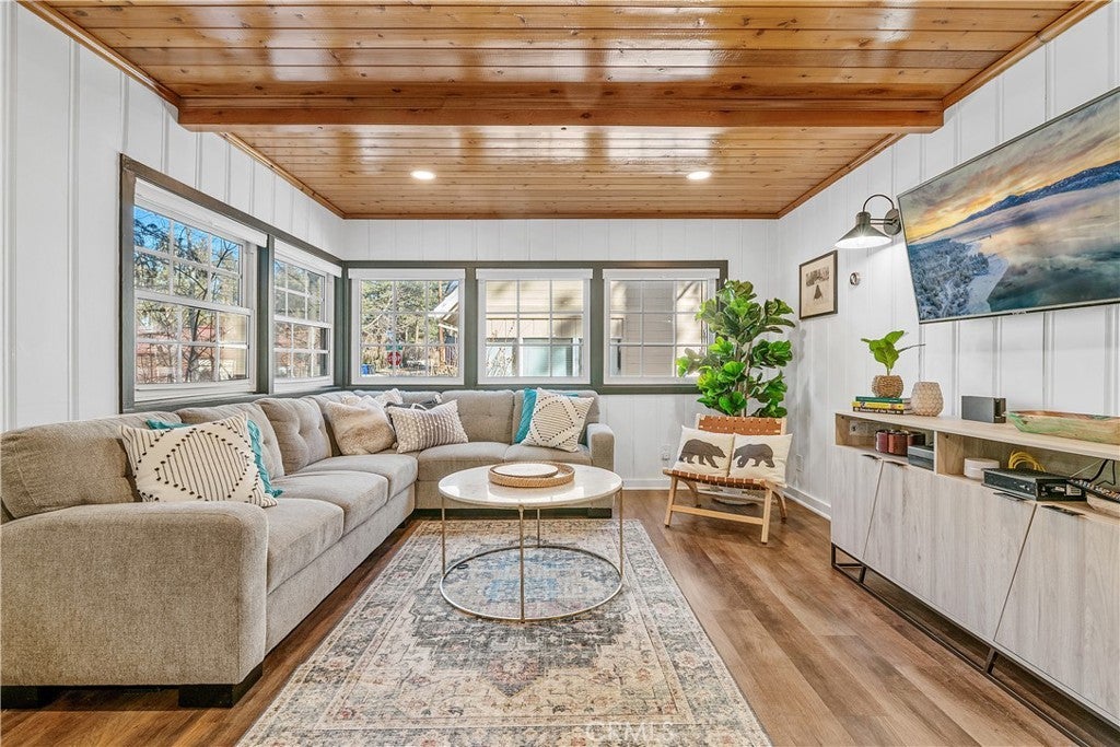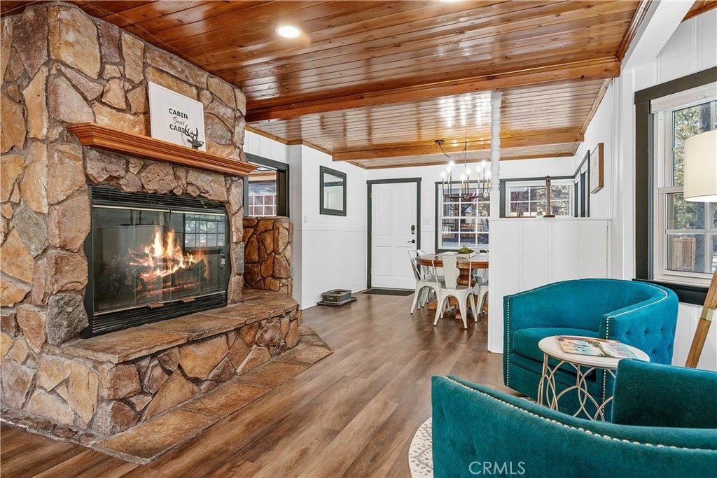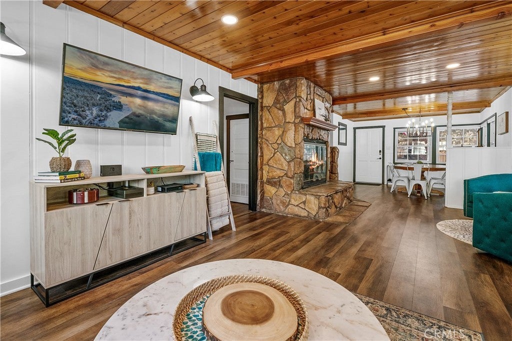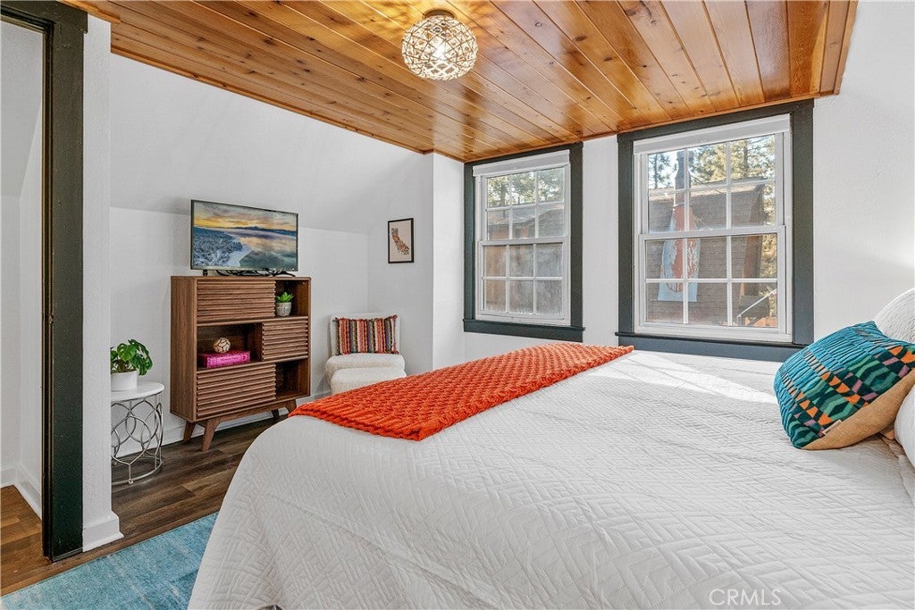 Welcome to 660 Barret Way, the iconic unique tree in the middle historic Maltby cabin retreat nestled in the picturesque poet's corner of Big Bear, California. This delightful property offers a perfect blend of rustic charm and modern comfort, providing an idyllic getaway for nature enthusiasts and relaxation seekers alike. Upon arrival, you will be captivated by the serene surroundings and beautiful natural landscape that surrounds this home. Situated on a generous flat useable lot, this property offers privacy and tranquility, allowing you to escape from the hustle and bustle of everyday life. The oversize driveway is perfect for parking of various kinds. The interior of the home was given an expansive remodel with warm & inviting finishes, featuring a spacious open floor plan that seamlessly connects the living, dining, and kitchen areas. Cozy up by the fireplace on chilly evenings or gather with loved ones for memorable moments. The well-appointed kitchen is a chef's dream, boasting modern appliances including a brand-new washer and dryer, & ample counter space connected with the recently remodeled mud room. Whether you're preparing a quick snack or a gourmet feast, this kitchen provides everything you need to unleash your culinary skills. The home offers three comfortable bedrooms, each designed to provide a restful retreat. Step outside onto the expansive deck, where you'll find the perfect spot for outdoor entertaining and relaxation. Host barbecues, gather around the fire pit, or simply unwind in the hot tub as you soak up the fresh mountain air. The large yard provides ample space for outdoor activities and offers a wonderful setting for children and pets to play. 660 Barret Way is ideally located, with easy access to the best that Big Bear has to offer. Enjoy a short drive to Big Bear Lake, where you can indulge in water sports, fishing, and lakeside picnics. Explore the surrounding mountains with hiking and biking trails that cater to all skill levels. During the winter months, take advantage of the nearby ski resorts for thrilling adventures on the slopes. This exceptional property also presents an investment opportunity, with great potential for vacation rentals, generating income and allowing you to share the beauty of Big Bear with others. Don't miss your chance to own this remarkable mountain retreat at 660 Barret Way. Schedule your private viewing today and experience the true essence of Big Bear living.