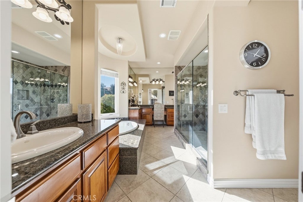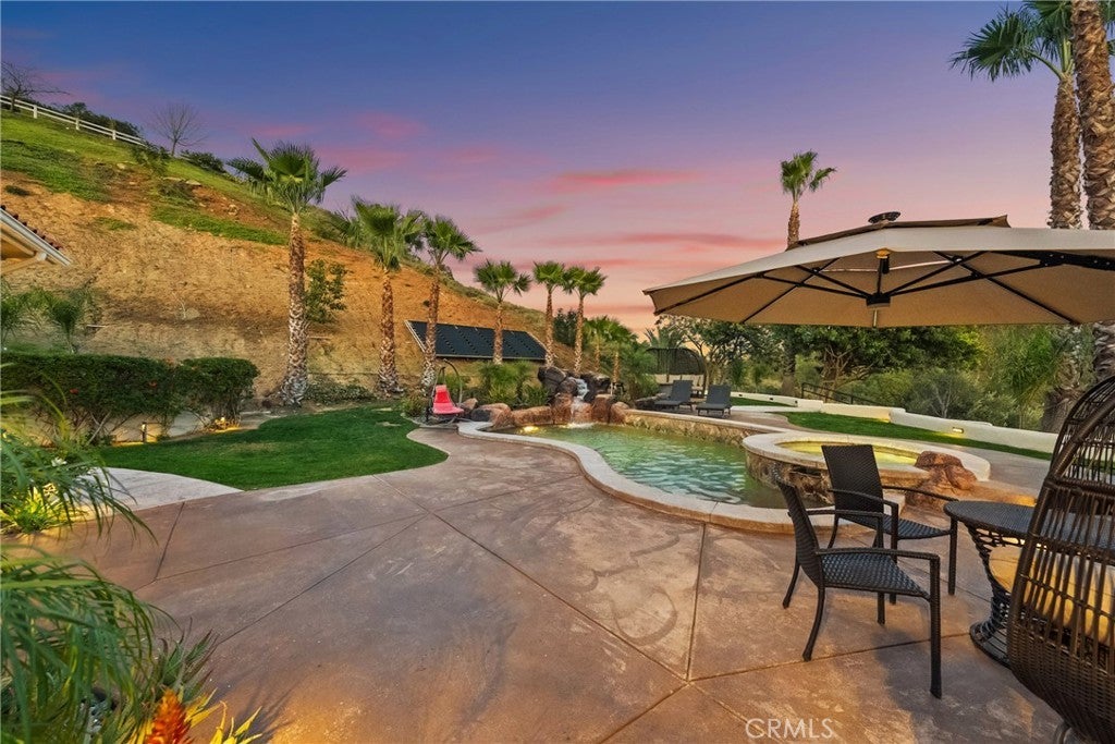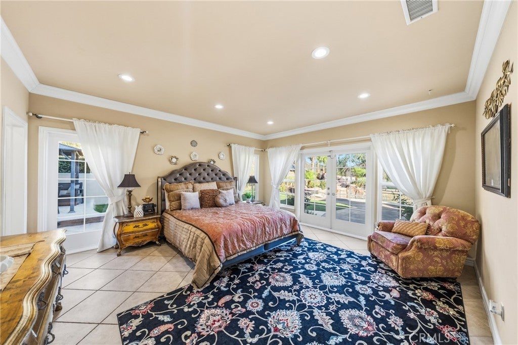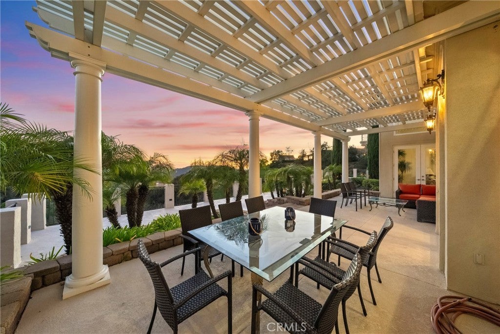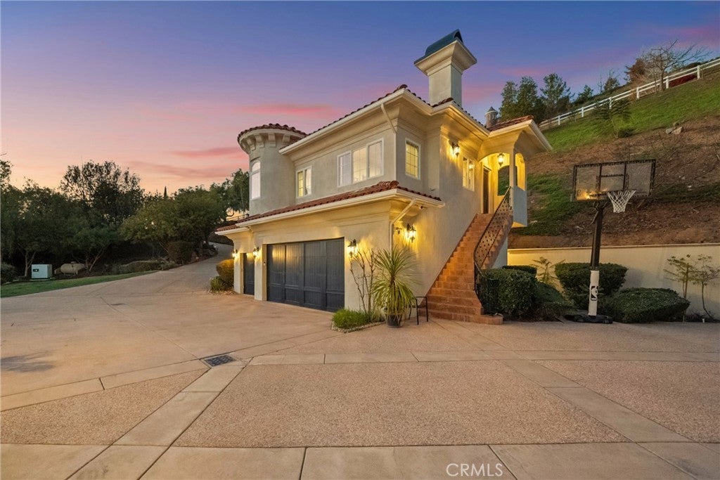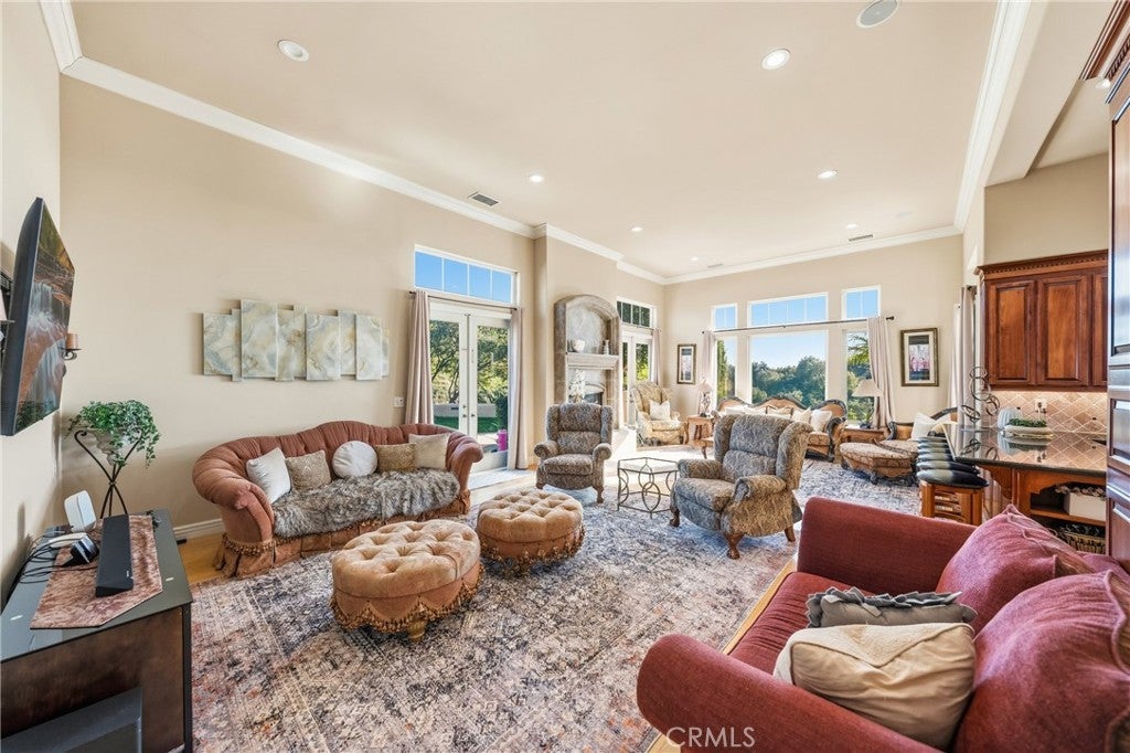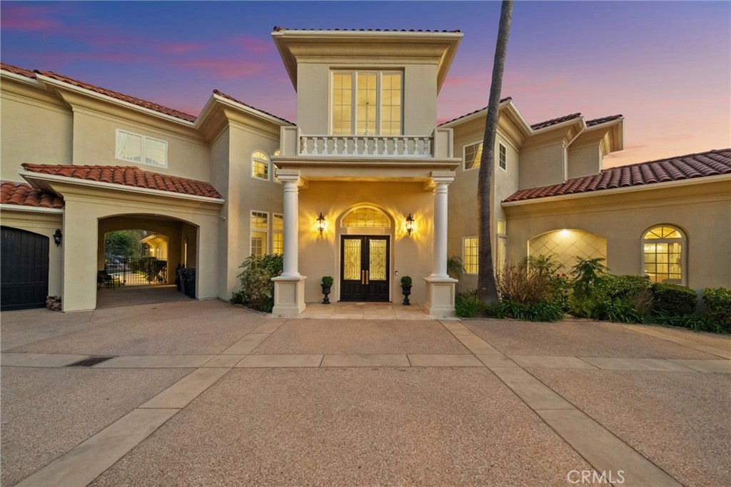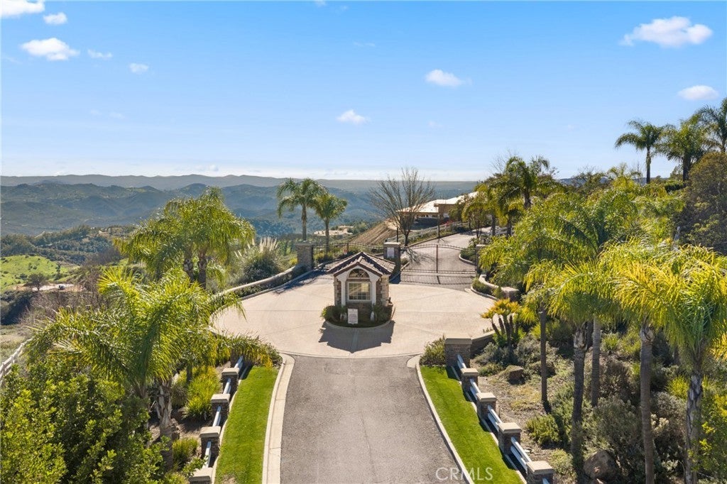 A breathtaking luxury estate in the prestigious gated Renaissance Estates community where timeless architecture converges on five acres and over 7,000 square feet of living space. Masterfully built, this residence has panoramic picturesque views of surrounding hills and valleys, tranquility and privacy. Experience high-end living, impeccably maintained landscapes, and various fruit trees, creating an atmosphere that elevates daily living just minutes from Old Town Temecula. The main residence welcomes you through glass double doors and cathedral ceilings with clerestory windows, illuminating the living room with Temecula’s stunning sunrise. Downstairs unveils a unique theater space and a ready-to-install elevator that makes this home stand out from all the rest. A formal dining room with a fireplace is adjacent to the gourmet kitchen that includes a center island with granite countertops, wine rack, butler's kitchen, high-quality milled wood cabinetry, reverse osmosis water system, and top of the line Bertazzoni six burner stove top with electric griddle. In the right wing, you’ll find the primary spa-like suite, which includes a jetted tub, double vanities, oversized closets, and double doors leading to the sweeping terrace overlooking majestic hills. The left wing offers another commodious guest suite with its own entry doors to the home. As you pass through corinthian marble pillars and walk up the grand staircase, you’ll find five spacious ensuite bedrooms with generous closet spaces, bathrooms, and a bonus room with built-in shelving. Additional home features include thirteen foot ceilings, a laundry chute, and lots of storage space. Entertain with ease when you step into the outdoor living space where you’ll find a spa, pool with its own paid-off solar, and a winding path leading you down to multiple fruit trees and vines. The separate guest house above a two car garage offers multi-generational living and includes a full kitchen, living room, one bedroom, and a full bath. Outdoors you’ll also find an additional car garage, comprehensive security system, and a brand new Generac generator with wifi. This home is a rare opportunity to own a private luxury residence in the heart of De Luz with close access to the 15 freeway.