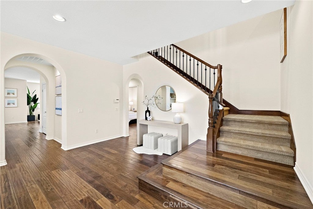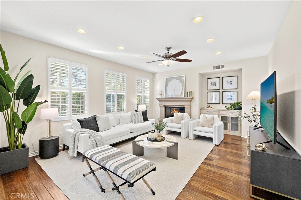 Beautiful Villa Rosa Plan 3 tucked away on a private cul-de-sac in the prestigious Woodbury community. This well-maintained home features 4 en-suite bedrooms including a main-floor suite, 4.5 baths, a dedicated office with abundant natural light, and a spacious bonus room with a balcony. Exceptional parking includes an extended driveway that can accommodate up to 4 cars, plus a 3-car garage, perfect for large households and guests. The open-concept layout highlights formal living and dining rooms, a spacious family room with a cozy fireplace, and a chef-inspired kitchen complete with granite countertops, center island, walk-in pantry, stainless steel appliances, and a built-in refrigerator. The elegant primary suite creates a private retreat with a fireplace, dual vanities, soaking tub, separate shower, and walk-in closet. Additional upgrades include hardwood floors, plantation shutters, recessed lighting, and designer interior paint. The private backyard offers generous outdoor space ideal for dining, entertaining, or enjoying everyday relaxation. Beyond the home, experience one of Irvine’s most sought-after lifestyle communities — Woodbury features 7 resort-style pools, sports courts for basketball, baseball, tennis, pickleball, and soccer, along with beautiful parks, gardens, and playgrounds. The convenience continues with Woodbury Town Center located right within the community for shopping and dining. Families benefit from being within a 10-minute walk to two top-rated schools — Woodbury Elementary and Jeffery Trail Middle School. Woodbury Elementary is also one of Irvine’s rare year-round schools, offering unique academic advantages. With easy access to major freeways and the Great Park’s world-class sports and recreation facilities, plus a proactive HOA and vibrant community activities, this home offers an exceptional blend of comfort, convenience, and lifestyle.