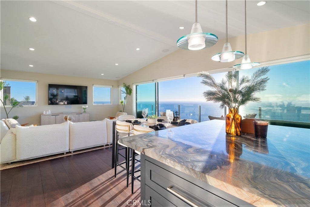 Fully Furnished Rental with Breathtaking Panoramic Coastline and City Views! Enjoy stunning Catalina Sunsets from high above while still being able to walk to the beach. This Laguna Beach Home has been Completely Remodeled to have the Modern feel and to maximize Ocean, Catalina Island, Main Beach, Whitewater, Sunset and City Light Views from every level. Approx. 1,664 Sq. Ft. with 3 Bedrooms / 3 Baths, the interior has extremely rare Ironwood Floors that were imported from Bali specifically for this home. Central AC & Heating. Some additional features include Vaulted Ceilings, a sleek Contemporary Staircase, and High-tech Lighting Fixtures. The Main floor showcases a Great Room with slide-away glass doors to the terrace, and a new Kitchen with Quartz Countertops, White Shaker Cabinetry, Designer Tile, a generously sized Island, and Stainless Steel Appliances including a built-in Wine Refrigerator. A state-of-the-art indoor/outdoor audio/video system accommodates a multitude of entertainment possibilities on all levels. The main Master Suite is located downstairs and includes a large sitting area with a bay window and access to a spacious view deck and an Outdoor Spa. Short-Term Peak Summer Months $20,000 / Month.