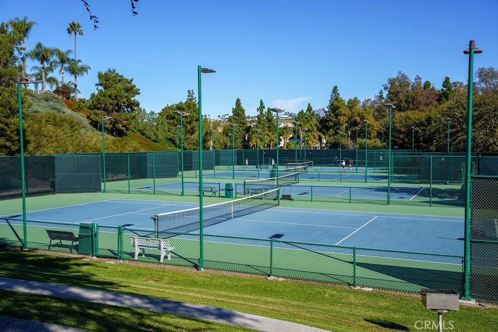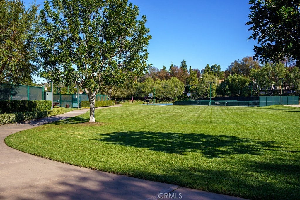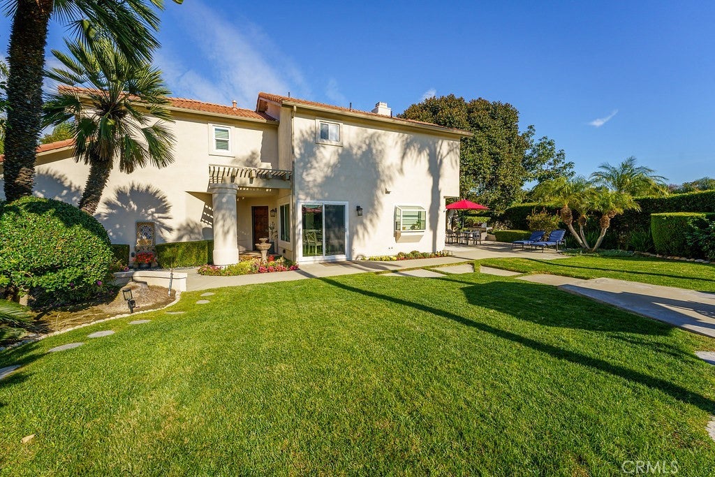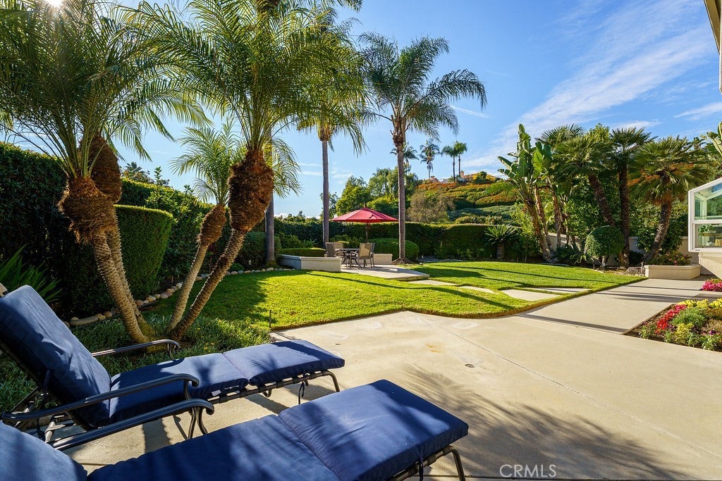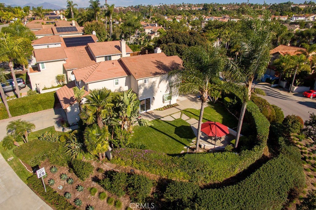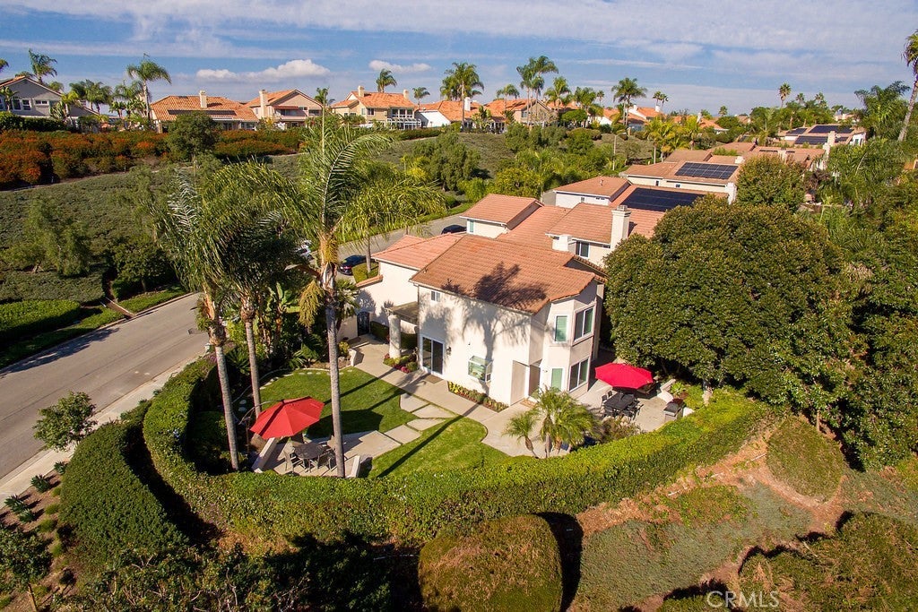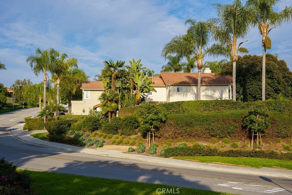 An extraordinarily large lot with a beautiful park-like setting, this is the one you've been waiting. The single loaded corner lot is raised above the street and has a wrap around yard which offers total privacy, plenty of room for a pool and tons of room to play and entertain. Gorgeous landscaping surrounds! A very welcoming entrance greets you with Beautiful 18 in. tile floors with a light stone look all through the downstairs. The large dining room is ready for big gatherings and spills out to the yard through the added sliding glass doors along with dual pane windows throughout the home. The living room offers a cozy double-sided fireplace and incredibly high ceilings with high windows to bring in natural light which are covered with new solar shades, cooling the home in the Summer. The kitchen features include tile counters, recessed lighting, custom pull-outs in pantry and cabinets, and a garden window. The kitchen nook is spacious with the two-sided fireplace, gorgeous dual pane windows, solar shades and a single French door to the yard. The primary suite includes a large walk-in closet with high end "Container Store" built-ins, new Pottery Barn marble top dual sink vanity, large shower, newer ceiling fan, gorgeous plantations shutters and wonderful tree lined views. The two front bedrooms are roomy with great built-ins as well. The home has been re-piped with Pex plumbing throughout. The CLUB Association incl. 3 pools, Jacuzzi, tennis, full gym, racquetball, playground and park. Very close to Laguna Niguel Regional Park & Laguna Niguel Lake! Additional recent upgraded items in the last few years include: Hot Water Heater, Main Water line from the street to the house, garage door opener, custom Levelour roller shades in dining room and family room, newer range, microwave, dishwasher and all newer Exterior paint!