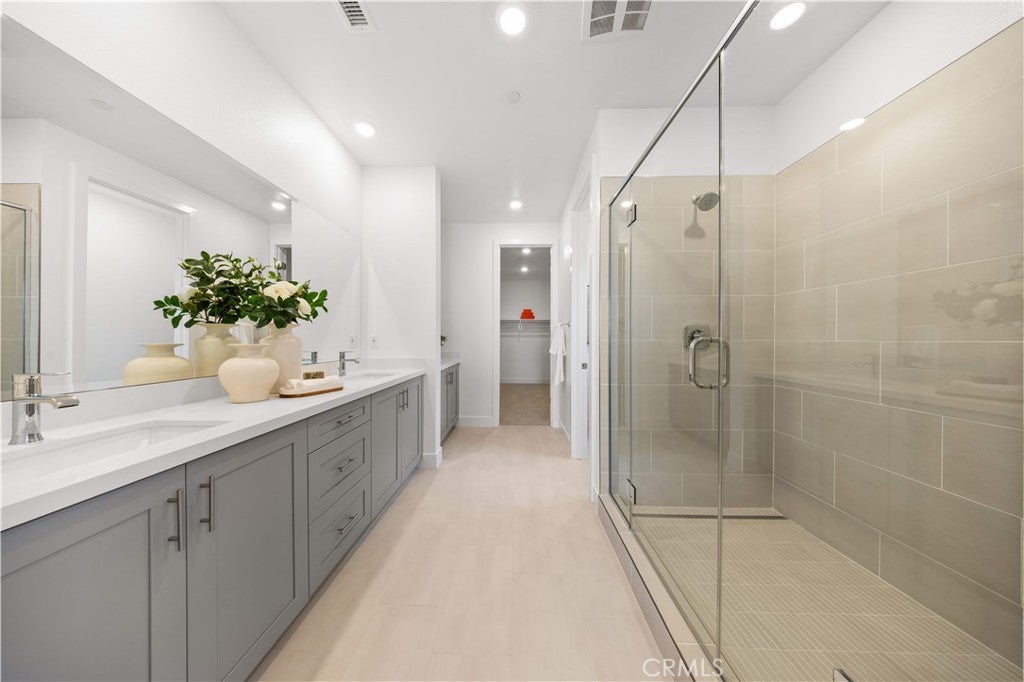 New construction! From the inviting front porch, you're welcomed into a spacious living room that seamlessly connects to the side yard, perfect for relaxing or entertaining friends. The first floor features a convenient guest bedroom and full bathroom, good for visitors or multi-generational living. The kitchen is equipped with quartz countertops and ample pantry space. Upstairs, you're greeted by a spacious loft. The loft leads to a convenient laundry room and three well-appointed bedrooms. The luxurious primary suite offers breathtaking views of the mountains and community, with an en-suite bathroom featuring modern finishes and ample space inside. Located in the prestigious Irvine Unified School District, this home also gives you access to a wealth of community amenities, including tennis courts, a clubhouse, swimming pool, spa, and more. What are you waiting for? Book for a tour now!