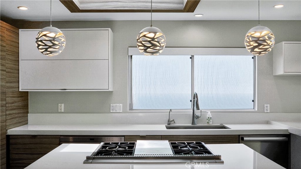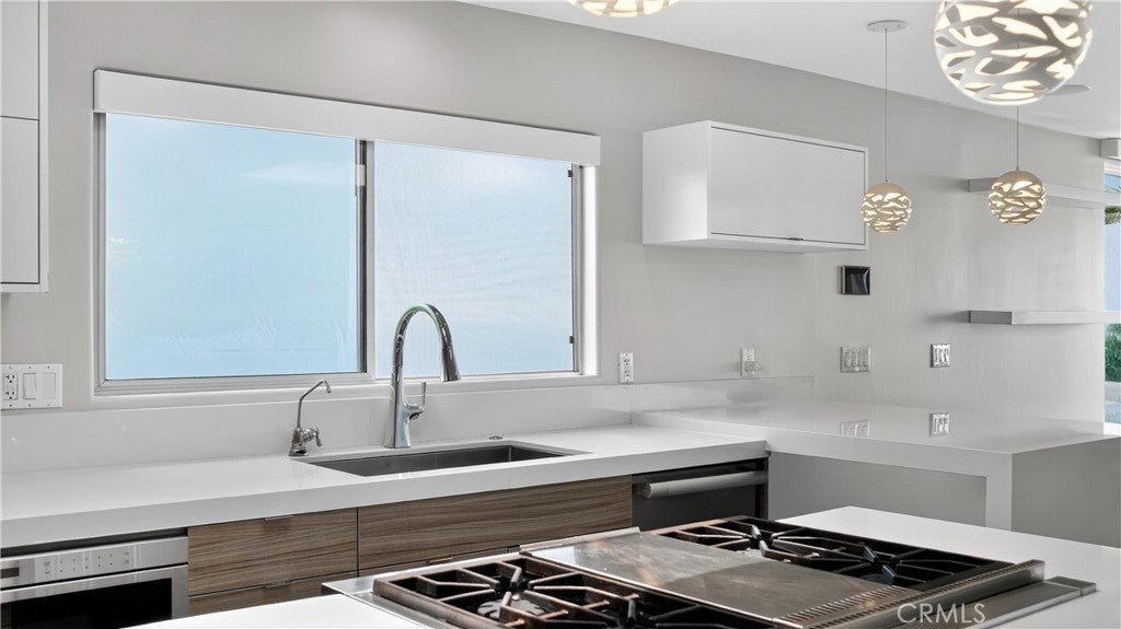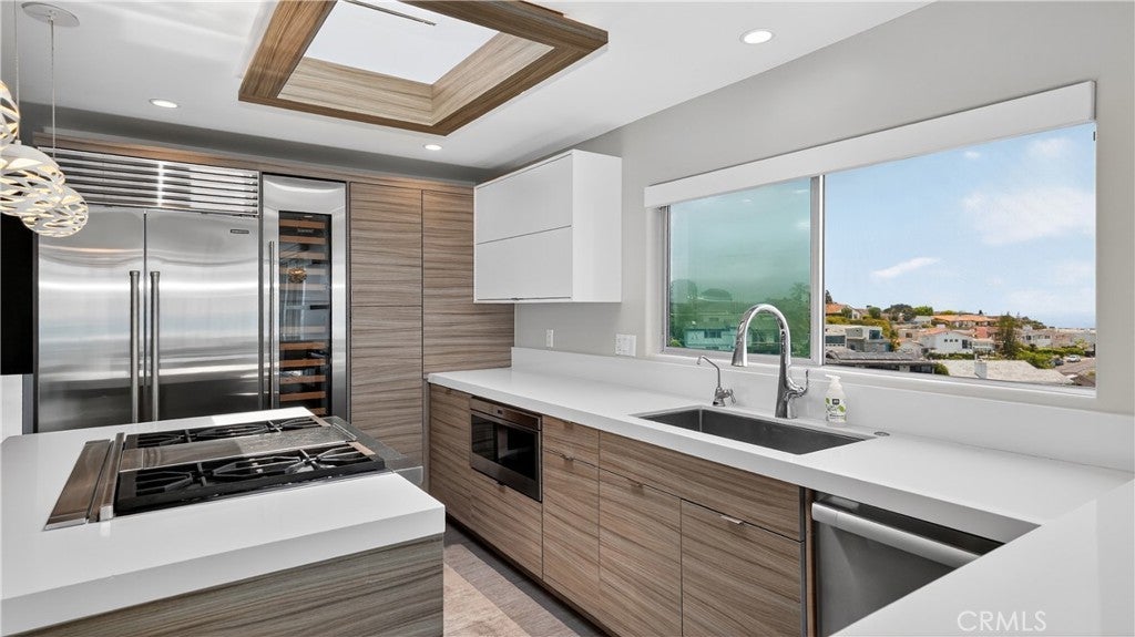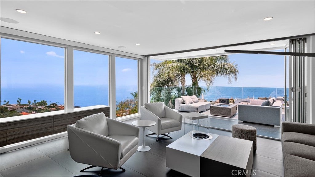 Fully furnished. Open to 6 months, month to month, short term- negotiable. Located at the end of a private cul-de-sac atop Arch Beach Heights, this striking split-level contemporary residence offers unobstructed 180-degree ocean and coastline views, with Catalina Island and twinkling city lights stretching beyond Laguna Beach, visible from nearly every room. Set on an exceptionally rare double-wide lot, the home spans nearly 2,350 square feet and features 4 bedrooms, 3.5 baths, a dedicated office (optional 4th bedroom), a private theater, and a custom wine room. Originally reimagined in 2007 by acclaimed designers Anders Lasater and Mark Singer, the home blends bold design with timeless quality. The spacious primary suite includes a custom-built closet system and an expansive spa-like bathroom complete with a steam shower, soaking tub, and a built-in TV for the ultimate retreat. Upstairs, the main living area boasts an open-concept layout with hardwood and stone flooring, a chef’s kitchen with stainless steel appliances—including a Bosch ultra-quiet dishwasher—cherry wood cabinetry, granite counters, skylights, a breakfast bar with a mini-fridge, and a center island cooktop. Sliding doors lead to both front and rear decks, seamlessly extending the living space outdoors. This exceptional property offers the rare combination of architectural sophistication, functional design, and breathtaking natural beauty. Just moments from world-class beaches, hiking trails, restaurants, and vibrant village life, this home is not only a peaceful retreat but also a gateway to the very best of coastal living. Whether you're entertaining guests or enjoying a quiet evening overlooking the Pacific, this one-of-a-kind residence delivers an unparalleled lifestyle experience.