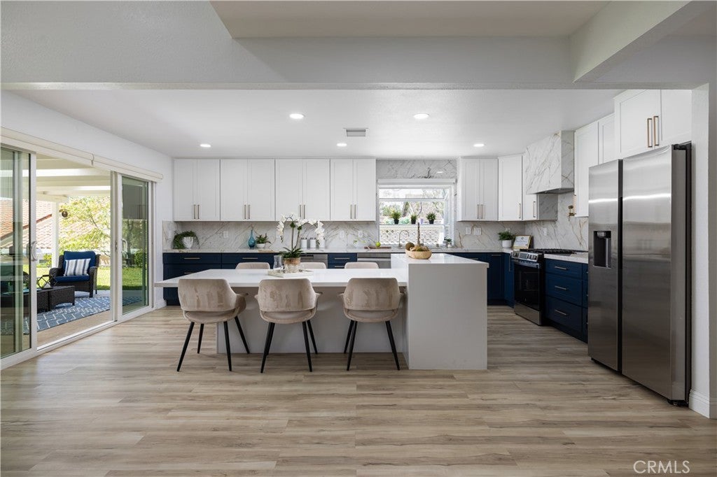Experience the epitome of 55+ gated living in this stunning, completely remodeled ranch-style home, ideally located on a quiet cul-de-sac in Mission Viejo’s desirable Casta Del Sol community. This nearly 1,500 sq. ft. residence offers three bedrooms and two bathrooms, with a unique private setting and no direct neighbors to both sides or behind. The home has been meticulously upgraded throughout. The designer gourmet kitchen is a showstopper, featuring a quartz island, Italian porcelain countertops, new cabinetry, a pot filler, drawer microwave, matching stainless steel appliances, and a walk-in pantry. Bi-fold glass doors frame lush greenbelt views and create seamless indoor–outdoor living, opening to a spacious entertainer’s backyard with a covered patio and skylights. The thousands spent on this recent remodel will not disappoint! The primary suite impresses with vaulted ceilings, recessed lighting, and a thoughtfully designed walk-in closet. The spa-style bath boasts dual sinks, Quartz counters, and a large walk-in shower with dual shower heads. Two secondary bedrooms and a fully remodeled bath with marble countertop complete the home. Additional highlights include new flooring, paint, double-pane windows, electronic blinds, a new hot water heater, nearly new HVAC, and a complete repipe. An attached two-car garage offers pull-down attic storage. The property also benefits from low taxes, no Mello Roos, and full membership to Lake Mission Viejo for fishing, boating, concerts, and more. Residents enjoy the many amenities of Casta Del Sol, including two recreation centers with pools, spas, tennis and pickleball courts, gym, hiking trails, shuffleboard, billiards, and more. This move-in ready home is a rare find—better hurry on this one!