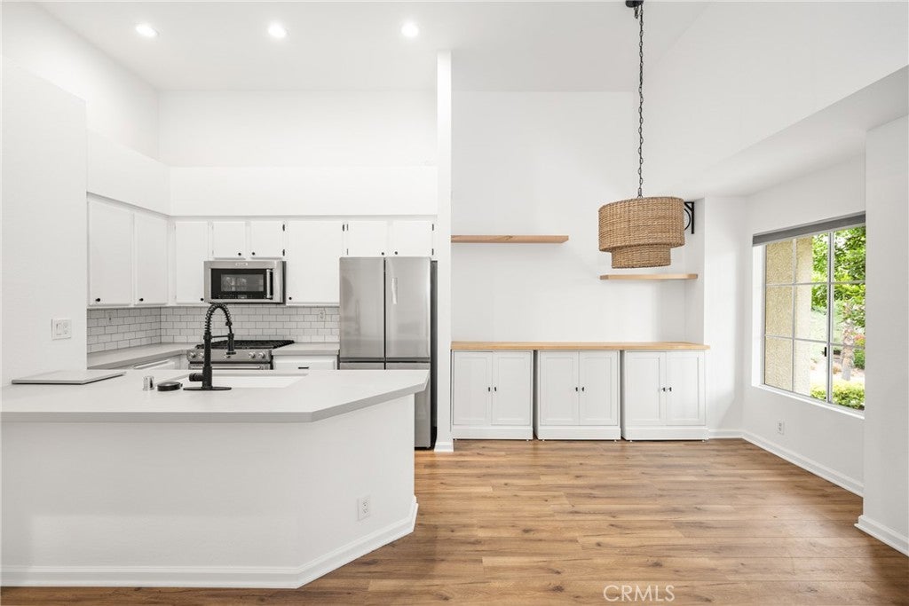 Experience the quintessential coastal lifestyle in this beautifully updated two bedroom, one-and-one-half bathroom upper-level condo, perfectly situated in the sought-after Briosa community of Laguna Hills. Offering privacy, space, and turn-key readiness. The thoughtfully designed living space boasts vaulted ceilings, elegant wood-like flooring, and a cozy fireplace that sets the stage for relaxed living. The spacious open floor plan seamlessly connects the living and dining areas to the stunning kitchen, which has been tastefully remodeled with Silestone countertops, a subway tile backsplash, and high-end KitchenAid stainless steel appliances. Perfect for both casual meals and entertaining! The luxurious primary suite features a spacious walk-in closet and an adjoining Jack and Jill master bath with dual vanities, providing ample space and privacy. The secondary bedroom is well-appointed with private patio access and room for a queen-sized bed, making it a comfortable and flexible space for guests or loved ones. This residence is equipped with modern conveniences including indoor laundry, extra storage, and a prime carport location. Residents of Briosa enjoy resort-style amenities, including a sparkling swimming pool, spa, basketball court, tranquil park with a picnic area, and playground. Outdoor enthusiasts will appreciate the proximity to hiking, biking, and equestrian trails, as well as the short distance to shopping, dining, and entertainment options. Located just minutes from award-winning schools, major freeways, and Orange County’s iconic beaches, this residence provides the perfect blend of convenience and coastal luxury. Don’t miss the rare opportunity to lease in this highly desirable community, which offers a premium lifestyle in an unbeatable location.