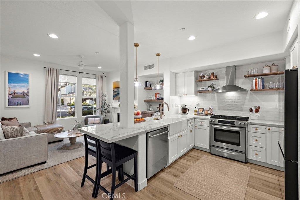 Prepare to fall in love with this remarkably updated, truly turnkey Cape Cod–style gem! Nestled in the tree-lined Davenport neighborhood of Ladera Ranch, this beautifully remodeled 1,583 sq. ft. townhome offers modern luxury, thoughtful design, and an unbeatable location close to highly rated schools, parks, a newly renovated water park, skate park, and more. Boasting an ideal layout, the home features all main living spaces on the first floor and two oversized bedrooms—dual primary suites—each located on its own private level. The property has undergone a complete, top-to-bottom remodel, showcasing new LVP flooring throughout and extensive custom finishes at every turn. The grand entry opens to a stunning chef-inspired kitchen with Quartzite countertops, new custom cabinetry, updated lighting, and brand-new appliances. The inviting family room and adjacent dining nook are elevated with a custom bar, decorative wainscoting, a built-in banquette, and floating shelves. A remodeled half bath, storage closet, and direct access to the two-car garage complete the lower level. Upstairs, the second floor hosts the laundry room and a spacious primary suite with room for an office, a generous walk-in closet, and a fully updated, spa-like bathroom. This luxurious retreat features a large walk-in shower with dual showerheads, marble accents, travertine flooring, new vanities, custom mirrors, and designer lighting. The third-floor bedroom—also an ensuite—is equally impressive, offering abundant space ideal for a playroom, office, or guest retreat. All bathrooms throughout the home have been completely remodeled with new quartz-top vanities, custom mirrors, updated lighting, new toilets, and refreshed tile. Additional highlights include:• Davenport community re-piped with PEX in 2016• HOA dues include Cox high-speed internet and front yard maintenance Experience the highly sought-after Ladera Ranch lifestyle, complete with award-winning schools and exceptional amenities: 14 pools, 4 clubhouses, multiple tennis and pickleball courts, a skate park, water park, splash pads, summer concerts, seasonal celebrations, and miles of scenic trails. This exceptional home is the perfect blend of comfort, style, and convenience—truly turnkey and ready to impress