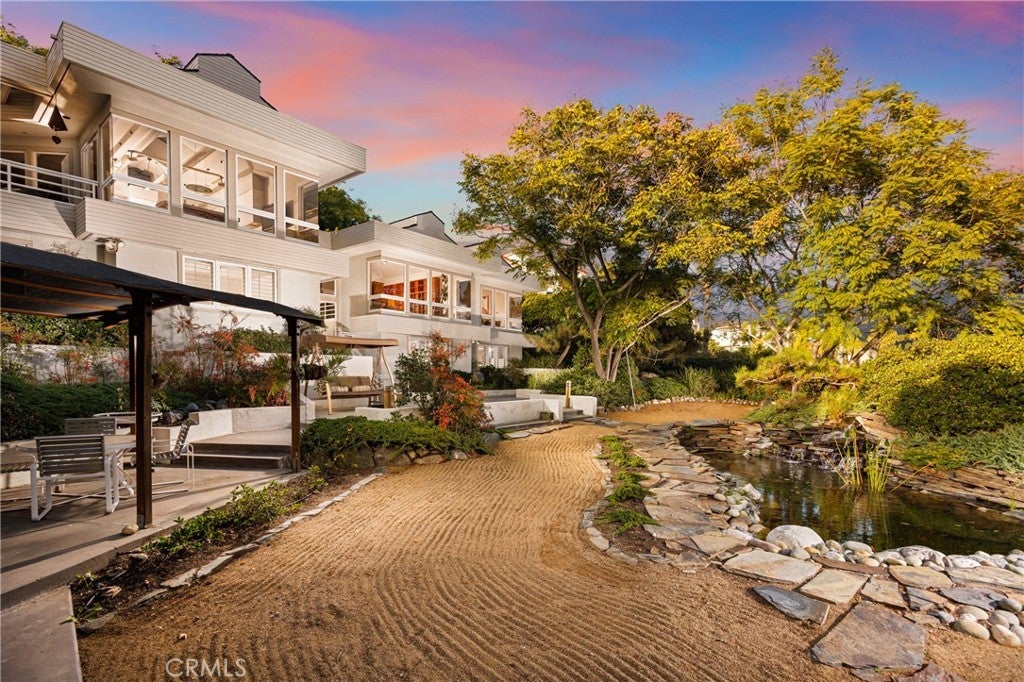 Another masterpiece crafted by renowned architect Ernest Velarde, this exceptional residence is located in the prestigious Peppertree Bend community of San Juan Capistrano. Designed with a refined modern Japanese contemporary fair, the home features an open floor plan that effortlessly harmonizes indoor and outdoor living. Set on a full acre, the grounds are a true work of art. Owners were inspired by the tradition Japanese Stroll Garden, the landscape embodies tranquility and authenticity. A gentle waterfall cascades into a reflective fish pond surrounded with white water lilies, many specimen trees, plants and vibrant flowers create a lush, park-like atmosphere. Winding pebble pathways lead through the gardens to a thriving fruit orchard, offering peaceful moments at every turn. This property is a rare fusion of architectural significance, natural beauty, and timeless design—an extraordinary sanctuary in one of San Juan Capistrano’s most coveted enclaves.