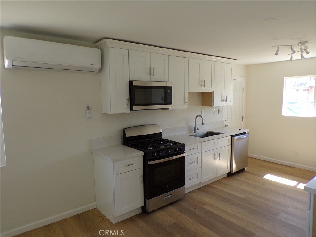 2 bedroom and 1 bathroom with new quartz countertops. Unit has stackable washer & dryer hookups. Stainless steel appliances, air conditioner, large front yard, and driveway. Additional features include an uncovered parking spot for off-street parking, with extra parking available upon request. First month rent & security deposit are due at signing. 1 cat or dog is allowed, not over 20 pounds, no vicious breeds. Equal Housing Opportunity. Real Estate Advisors Inc DRE: 01476651