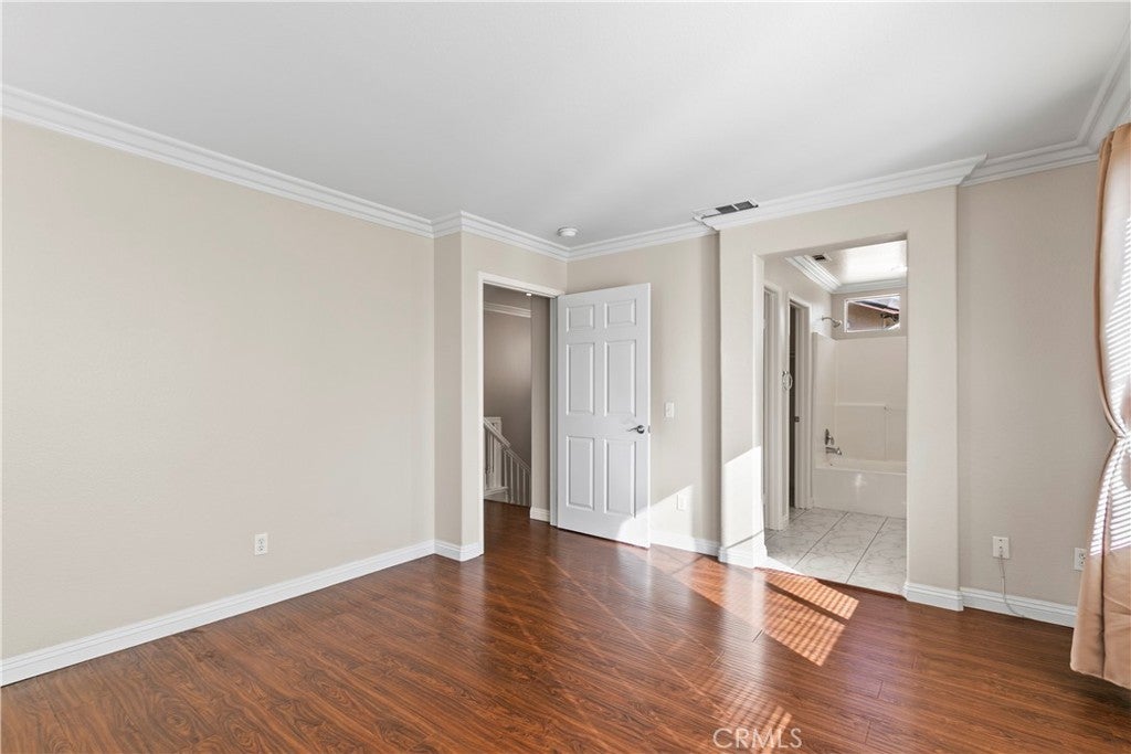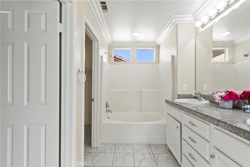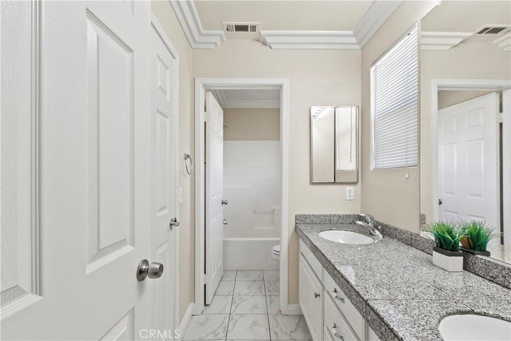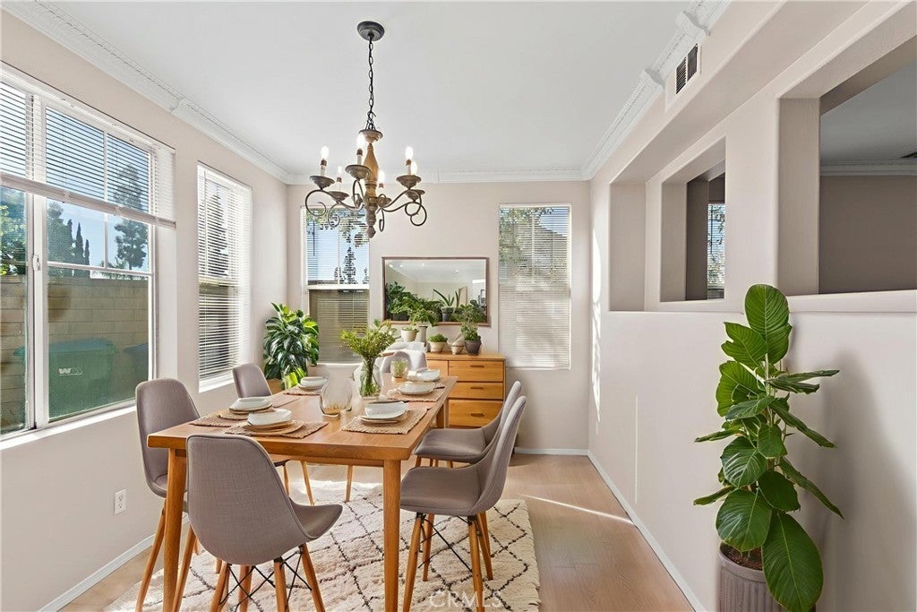 LOCATION, LOCATION!! Easy Access to Freeway and nice neighborhood. MODEL Home with many upgrades. It is a TURNKEY condition and READY to MOVE-IN, a MUST SEE! Amenities include granite counters in the kitchen & bathrooms, custom tile throughout downstairs, laminate wood flooring in all bedrooms, crown molding, living room fireplace, custom light fixtures and ceiling fan, additional storage space below staircases, indoor downstairs laundry room, large walk-in closets in master bedroom, and 2-car attached garage. Other features include a private backyard and access to the pool area, playground and jacuzzi. Low HOA fee and property tax rate. Excellent residential community very rare in the market!