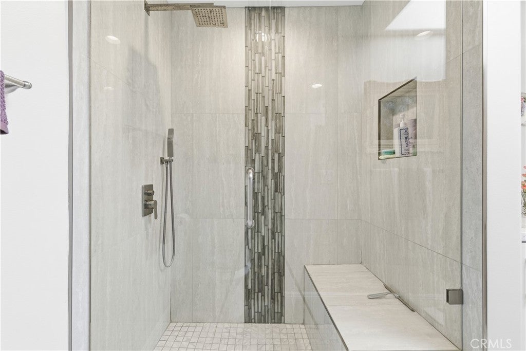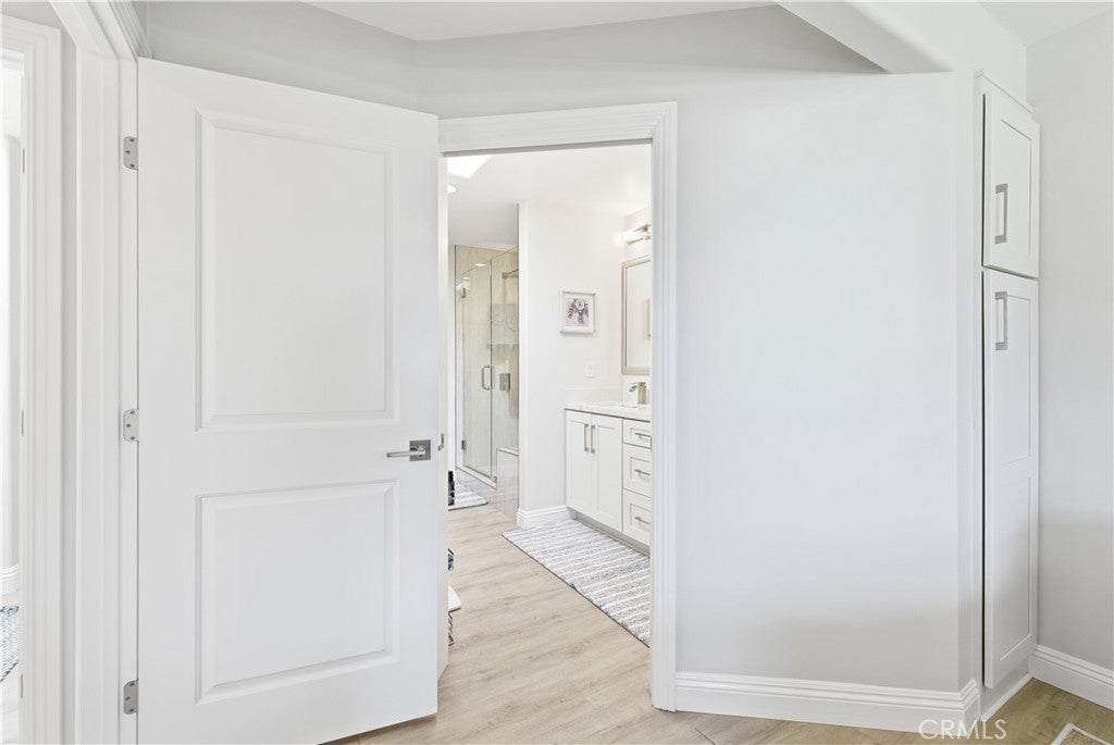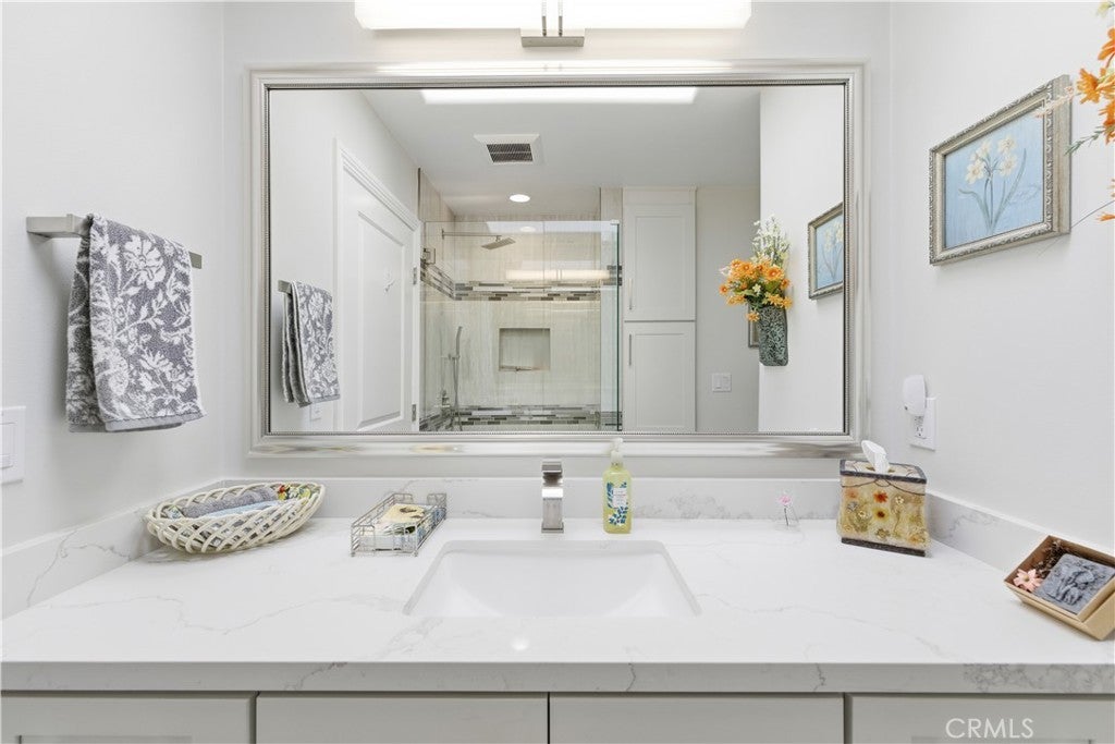 Experience sweeping Saddleback Mountain views from this beautifully reimagined 2 bed 2 bath CASTILLA model in Laguna Woods Village. Completely remodeled in 2019, this upper-level luxury condo blends modern design with effortless comfort. The open floor plan features elevated ceilings, added skylights, recessed lighting, dual-pane windows and sliders, and an abundance of natural light throughout. The designer kitchen showcases quartz countertops, stainless steel appliances, and contemporary finishes. Additional upgrades include luxury waterproof flooring, chic fixtures, crown molding, and a 60-inch electric fireplace that anchors the living space with warmth and style. The spacious primary bedroom offers a custom built-in closet, mirrored closet doors, and excellent storage. A wraparound balcony extends your living space outdoors, creating the perfect vantage point to enjoy mountain views. A stackable washer and dryer are conveniently included. Located near shopping, dining, entertainment, Laguna Beach, and the countless activities and services offered within Laguna Woods Village—golf, pools, fitness centers, studios, clubs, and more. This 55+ guard-gated community offers resort-style living in the heart of South Orange County.