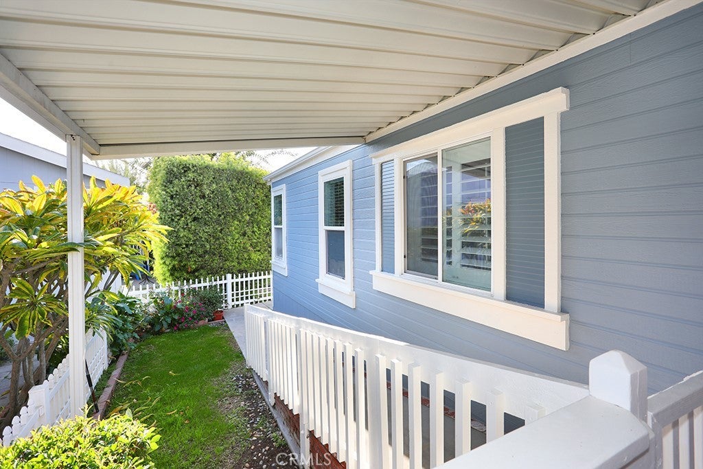 This manufactured home is a MUST SEE! It is one of those rare homes where these is “nothing not to like:” Spacious floorplan, great location in the Community, peaceful outside deck, recently remodeled, and beautifully maintained. Sitting at approximately 1344 square feet, it has 3 bedrooms, 2 bathrooms. It is located inside Saddleback Mobilodge, one of Orange County's top ranked 55+ Senior Communities. Saddleback Mobilodge is centrally and conveniently located in the middle of Orange County in the City of Tustin, aka the “City of Trees.” 61 Saddleback Rd. is situated on a desirable inner lot that is close to the community clubhouse, pool, and spa. New exterior and interior paint was just completed prior to going on the market. Multiple solar tubes as well as a dormer in both the living room and guest bedroom provide an abundant amount of natural light. The home features a fully remodeled kitchen and has wood laminate flooring throughout. The kitchen includes granite counters, tile backsplash, tons of cabinet space, a built-in desk, and kitchen island. The dining room has a lovely chandelier and a large built-in hutch with interior lighting. There are many important structural upgrades such as 6 inch interior walls (same as single family construction), thicker insulation, architectural roof shingles, composite porch decking, and custom built solid wood cabinets throughout the home. Wood “Plantation” shutters in the living room, dining room and kitchen are a lovely upgrade. Moving to the exterior, an extra large 8ft by 20ft raised deck sits directly off the front entrance and provides a spacious outdoor area for relaxing. There is a sizeable shed located in the driveway. Home also includes a central A/C and beautiful landscaping to enjoy. Rent of only $1285 is a great value for Orange County that is rare to find for the quality of the Community. Saddleback Mobilodge is one of the most beautiful and peaceful manufactured home communities in Orange County. The community has fully mature trees throughout, lush landscaping in the common areas as well as neatly manicured yards and the vast majority of the homes are newer. Park amenities include a clubhouse, pool, spa, billiards room, library, shuffleboard court, RV storage, and an active and fun social club that plans events weekly and monthly.