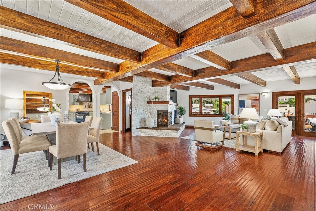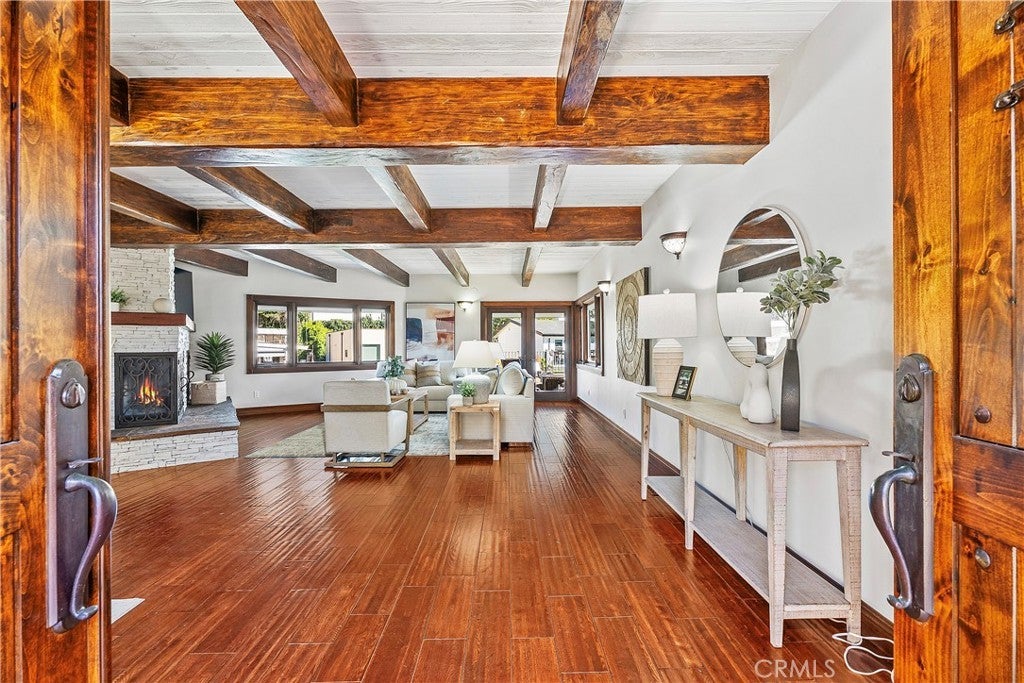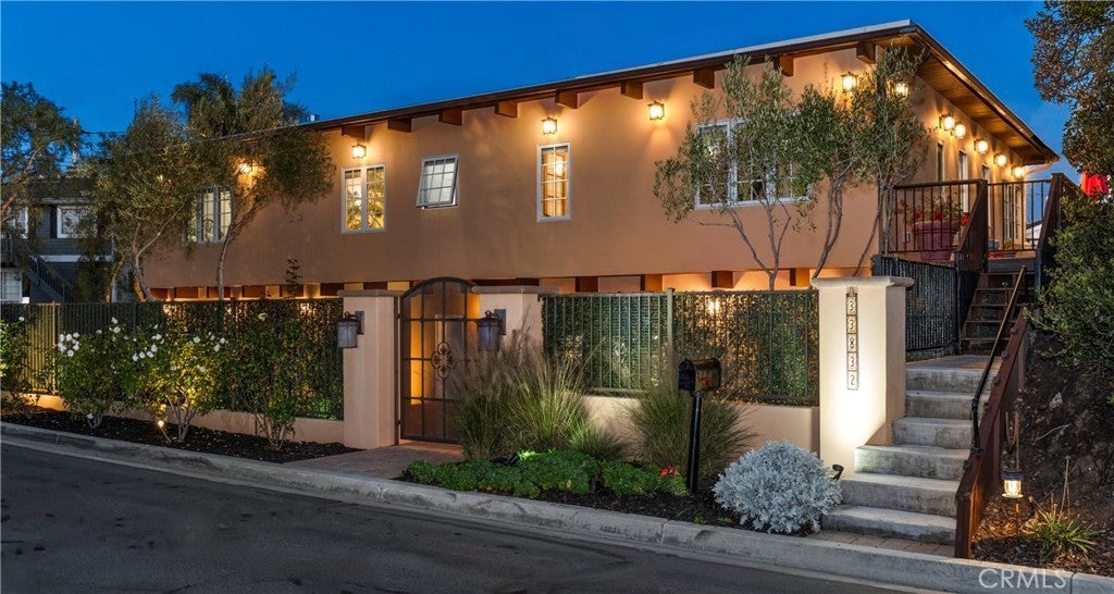 Home for the Holidays! This majestic, invitingly rustic yet undeniably sophisticated Lantern Village Mediterranean Ocean View estate is situated on a street-to-street peninsula-shaped corner lot absent adjoining residences on all 3 sides. This meticulously maintained and well appointed residence will have all your out-of-town friends and relatives suddenly scrambling for a reason to come visit. And since 3 of the 4 bedrooms have their own private entrance, they'll likely want to stay a while (Airbnb). Four sets of double-doors open directly out to the vast, well-manicured and tranquil 1,600 sqft. courtyard, firepit and lawn with mature trees and landscaping where you can entertain your guests, and enjoy al fresco dining, compliments of your outdoor kitchen. Casement Pella windows and Pella doors allow for an abundance of natural light during the day and the integrated Pella shades afford you privacy at night. The recently upgraded kitchen features a farmhouse sink, new quartzite counters and tile backsplash, custom-built cabinets with soft-close doors and drawers and state of the art appliances, including cabinet matching faceplate dishwasher and ice-maker. This true chef's kitchen is equipped with a 42-inch stainless-steel GE Cafe side-by-side refrigerator, an ILVE Majestic II Series 48-inch Dual-Fuel Range with 8 Burners, and a Griddle, accompanied by a custom-built range hood. A designated office space sits across from the spacious breakfast nook with built-in storage in the bench seat. The Virginia Mill Works pre-finished solid hand-scraped and distressed hardwood floors are striking against the new interior paint. The lower-level bedroom and bathroom suite with its own patio, private entrance, kitchenette, laundry and family room, lends itself to potential rental income. The other 3 bedrooms feature remote-controlled fireplaces, custom walk-in closets designed by California Closets and recently updated spa-like bathrooms. Programable Leviton light switch timers and dimmers throughout. Extra large storage room on second floor offers potential for an elevator or roof-top-access spiral staircase. Located about 1 mile from the historic Dana Point Harbor and Doheny State Beach, and about a half-mile to popular restaurants and shopping with up to 50 additional restaurants and retailers coming soon as part of the coastal renovation. Enjoy 4th of July Fireworks shows from nearly 500 sqft. of harbor-facing decks and balconies. Walking distance to Strands Beach