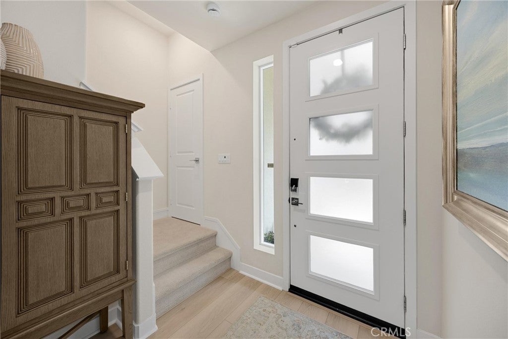 Elevated living awaits in Rancho Mission Viejo. This 2 year new, thoughtfully upgraded detached residence offers modern comfort in one of Orange County’s most desirable new communities. Welcome to 26 Crown Point, a 2023 home tucked within the intimate Esencia neighborhood of Rienda, with the advantage of only one HOA. A freshly landscaped intimate front yard with low-maintenance foliage creates a polished first impression. The oversized tandem two-car garage provides direct access and is outfitted with epoxy flooring, a whole-house water softener, dual EV chargers, a tankless water heater, and a paid-in-full seven-panel solar system, ensuring efficiency and convenience. The main living level is filled with natural light and designed for open concept living. This inviting space includes a dining area, a warm and comfortable living room, a powder room, and a balcony with community views. The designer kitchen features soft-close cabinetry, a contemporary tile backsplash, stainless steel appliances, and a generous single-basin sink, all complemented by premium wood-look luxury vinyl plank flooring. Upstairs, two serene bedroom suites are accompanied by a conveniently placed laundry area, with washer, dryer, and refrigerator included. The primary retreat offers a walk-in closet, personal balcony with adjustable shade. Attached bath features a spacious walk-in shower with dual sinks. The natural light filled secondary suite enjoys its own private bath. Centrally located within Rienda, the home provides access to Rancho Mission Viejo’s exceptional amenities. Residents enjoy a golf cart-friendly lifestyle, pickleball and bocce courts, fitness centers, clubhouse bar, arcade room, neighborhood events including farmers markets, and highly rated local schools. Boulder Pond is just steps away, while shopping, dining, and beaches are all within a short drive. The 241 Toll Road is minutes away, and coastal destinations such as Old San Juan, Dana Point, and San Clemente are close at hand. Move-in ready, 26 Crown Point is a rare jewel where you can simply unpack, relax, and enjoy the elevated lifestyle of Rancho Mission Viejo.