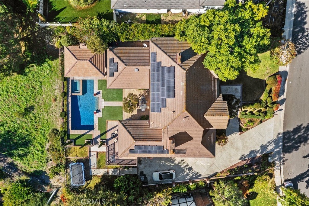 Stunning Stoneridge Estates home offering 4 bedrooms, including a first-floor master suite for single-level living, an office, and a spacious bonus room upstairs—perfect for a media room, playroom, or additional living area. The remodeled kitchen flows seamlessly into the dining and family rooms and provides easy access to the backyard, creating effortless indoor-outdoor living. The home also offers exceptional privacy, 3 fireplaces, a 3-car garage, solar panels, and a large driveway. Step outside to a backyard oasis with a sparkling pool, covered cabana with fireplace and TV, and breathtaking views of the surrounding trees, hills, and open spaces—ideal for entertaining or relaxing. Enjoy the best of San Juan Capistrano with easy access to transportation, the vibrant new River Street Marketplace, exceptional restaurants, shopping, and local attractions. This home combines comfort, style, privacy, and lifestyle in one of the area’s most desirable neighborhoods.