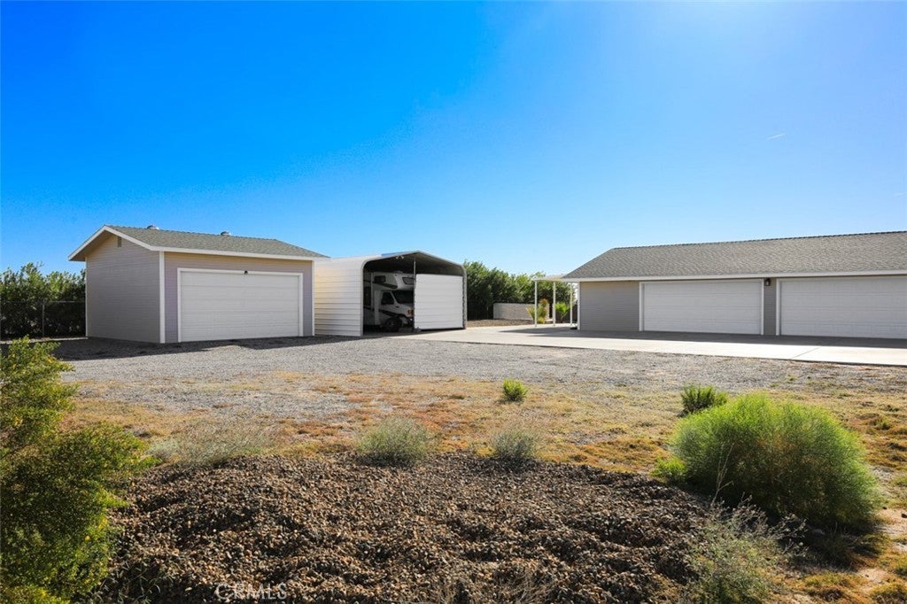 Concrete, Carport, Door-Multi, Driveway, Garage Faces Front, Garage, Garage Door Opener, Gravel, RV Access/Parking, Detached Carport, RV Covered, RV Hook-Ups, Workshop in Garage