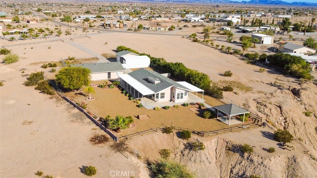 Gorgeous home on a full acre lot perched on the Bluff overlooking the Colorado River. Enjoy beautiful sunrises and sunsets from this exceptional property offering unmatched views and serene desert living. Ideal for car enthusiasts, the home features garages for 6+ vehicles (22x20 & 30x48), 220 power, a workshop/office off the garage, plus a covered carport and covered RV parking with two 30-amp RV hookups. The drought-resistant landscaping is on auto timers, making maintenance effortless. Inside, the open floorplan is filled with natural light and showcases a meticulously cared-for 3 bedroom, 2 bathroom home. The kitchen includes a dining nook plus a formal dining room, and the living room offers a high ceiling for an even more spacious feel. A convenient, oversized indoor laundry room provides abundant storage. Nearby Big River Park features a launch ramp, beach, and restaurant—perfect for enjoying riverfront recreation just minutes away.