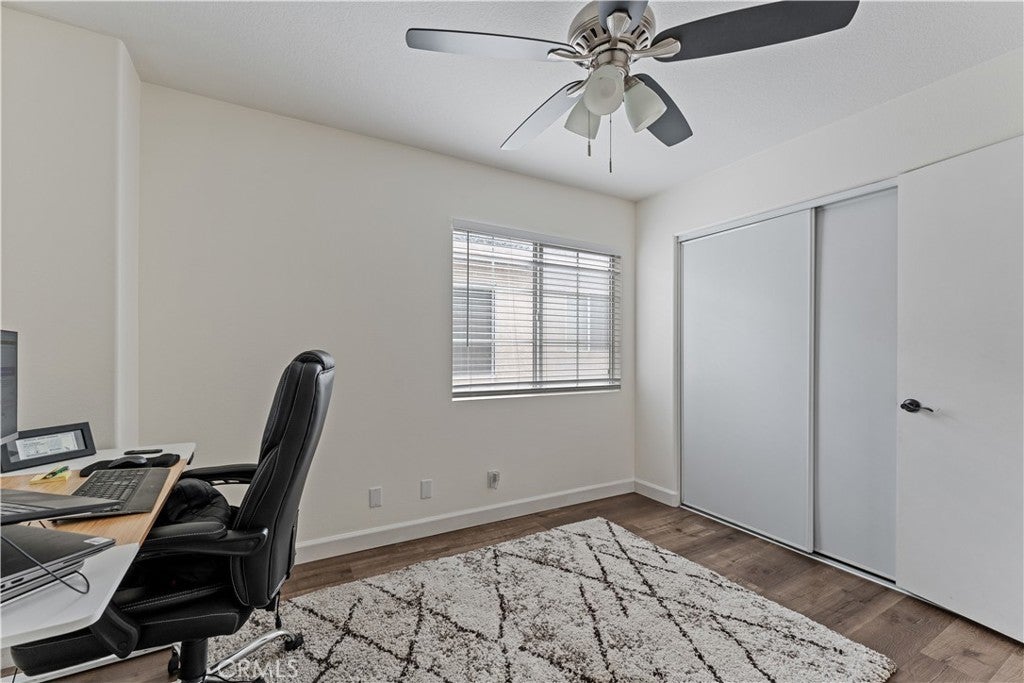 Welcome to Lampson Cottages, a rare find in Garden Grove’s gated community! This beautifully renovated 3-bedroom, 2.5-bath home blends modern upgrades with timeless comfort. Built in 2000 with a low HOA, it offers peace of mind and style in a quiet, private neighborhood. Step inside to discover fresh interior paint, recessed lighting, and laminate flooring throughout. The kitchen features quartz countertops, newer appliances, and a gas range, perfect for everyday living or entertaining. The primary suite impresses with vaulted ceilings, French doors, a walk-in closet, and a spa-inspired bathroom with dual sinks and a spacious walk-in shower. Additional highlights include central A/C and heating, ceiling fans in all bedrooms, a cozy gas fireplace, and a two-car garage with direct access and a Tesla charger. Enjoy relaxing or entertaining in your private backyard retreat, with fans and light. Experience the best of Orange County living in a secure, move-in-ready home close to schools, shopping, and freeways. A must-see opportunity in one of Garden Grove’s most desirable gated communities
