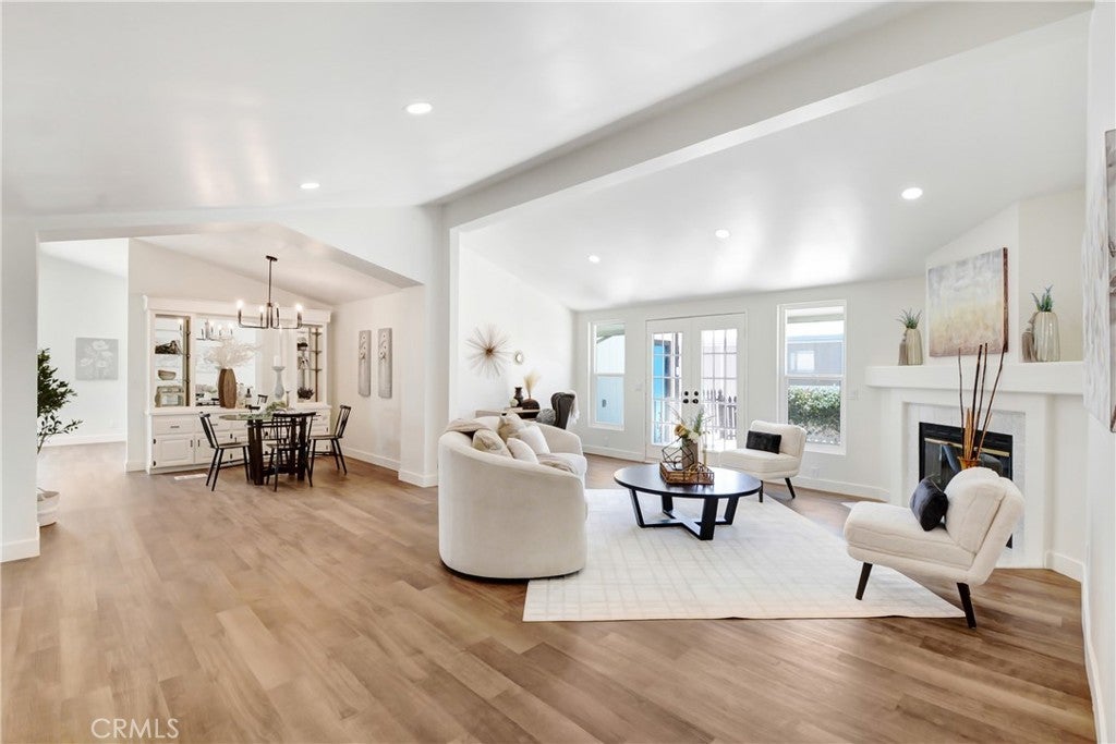 Welcome to 1730 San Simeon Drive, where high-end renovation meets unbeatable value. This beautifully remodeled triple-wide home on owned land in Sierra Dawn Estates is truly one of a kind. A new roof, repipe, and full renovation provide peace of mind and modern comfort—paired with a price point that makes this one of the strongest values in the entire neighborhood. This 2 bedroom, 2 bath property features a rare attached 2-car garage and the spacious design only a triple-wide can offer. Step inside to an airy open floor plan with vaulted ceilings, designer finishes, and wide-plank luxury vinyl flooring throughout. Large windows and French doors fill the space with natural light, creating a warm and inviting atmosphere. The completely remodeled kitchen is the heart of the home, showcasing soft-close shaker cabinets, quartz countertops, stainless steel appliances, and an oversized island that opens to a second living area perfect for entertaining family and friends. The formal dining room includes a built-in buffet with mirrored shelving, adding both storage and style. The primary suite offers a true retreat with a freestanding soaking tub, walk-in shower, and dual vanities. A large laundry room provides additional cabinetry, a quartz folding counter, and a utility sink. The attached garage offers convenience and rare storage, while the bonus sitting area features mountain views and a quiet place to unwind. This home is 433A certified and eligible for Conventional, FHA, and VA financing. HOA dues are just $168 per month and include access to multiple pools, spas, dog parks, and clubhouses in one of Hemet’s most desirable 55+ communities. Every major system has been upgraded for ease of ownership, and the home showcases meticulous attention to detail throughout. Move right in and enjoy the comfort and quality of a high-end renovation without the premium price tag. Homes like this—triple-wide, on owned land, fully renovated, and with a two-car garage—rarely come to market. Don’t wait. Schedule your showing today and experience one of the best values in Sierra Dawn Estates.