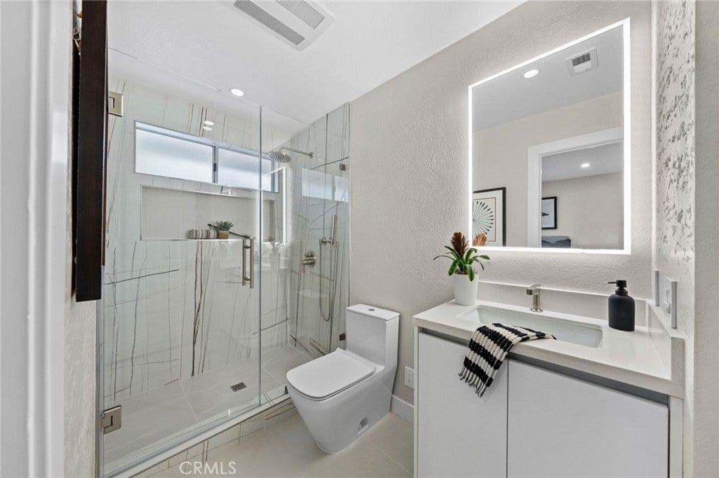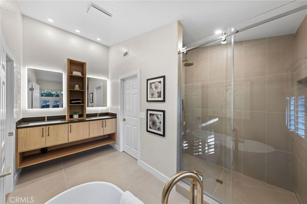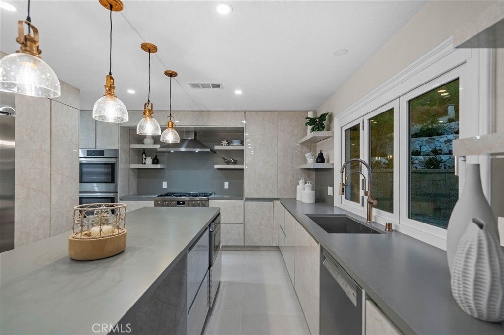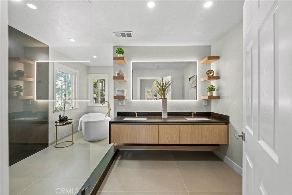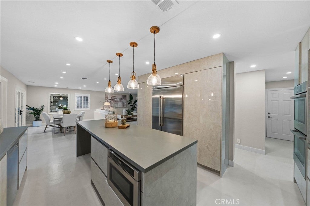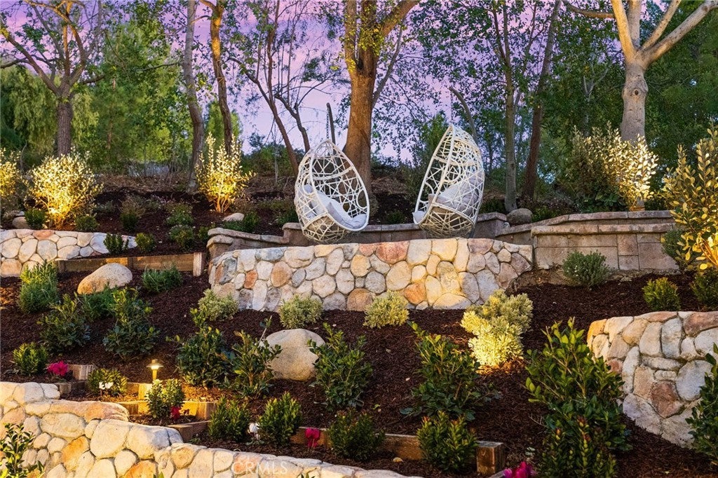 Welcome to this exquisitely renovated 4-bedroom, 4.5-bath residence in the coveted Village of Coto de Caza. This masterfully reimagined home showcases contemporary luxury living while maintaining the warmth and charm that defines this historic community. The home's striking curb appeal features new landscaping with professional lighting, a designer driveway with modern concrete panels, and thoughtfully placed ambient lighting that creates an enchanting approach. An expertly terraced backyard with custom stone retaining walls, hanging egg chairs, and strategic lighting creates multiple outdoor living spaces perfect for both relaxation and entertaining. Step inside to discover a complete transformation where no detail has been overlooked. The gourmet kitchen stands as the heart of the home, boasting custom floor-to-ceiling modern cabinetry in light neutral tones, premium stone countertops, and a sleek center island with waterfall edges. High-end stainless steel appliances, including a Café built-in refrigerator, and designer pendant lighting complete this culinary haven, while open sight lines seamlessly connect to the dining and living areas. The primary suite offers a private sanctuary with vaulted ceilings and a private balcony. Its spa-inspired bathroom features a luxurious freestanding soaking tub, oversized glass shower, floating double vanity with designer lighting, and custom wood shelving with modern fixtures. The thoughtfully designed walk-in closets offer abundant storage with custom organization systems. No expense was spared in selecting premium finishes, from sophisticated brushed gold plumbing fixtures to high-end hardware and artfully curated lighting throughout. The attention to detail continues with new roof and windows, engineered hardwood flooring, custom millwork, and architectural details. Expansive French doors flood the interior with natural light while providing easy access to the outdoor living spaces. Located just minutes from the historic Old Coto Country Club and nestled in the picturesque rolling hills of Coto de Caza, this turnkey residence offers the perfect blend of luxury living and community charm. With designer touches and premium finishes too numerous to list, this stunning property is truly a must-see to appreciate the level of craftsmanship throughout. This is more than just a home; it's an opportunity to be part of a community where lasting memories are made and traditions are cherished.