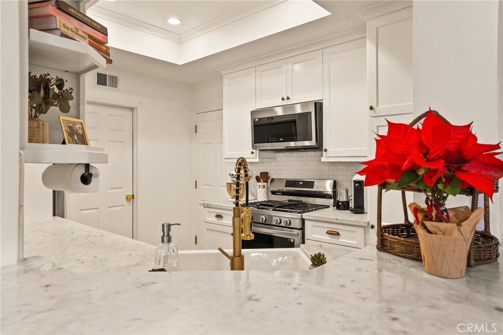 BACK ON THE MARKET! Newport Beach Remodeled Luxury Townhome located in a private, gated community just steps from the Back Bay trails. This stunning single-level, ground-floor residence features 2 bedrooms, 2 full bathrooms, and two single-car garages, including one attached garage with direct interior access. The beautifully remodeled interior offers a light-filled living and dining area with 9-foot ceilings and upgraded ceramic tile wood-style flooring throughout. The updated kitchen showcases, custom cabinetry, Carrara marble countertops, recessed lighting with under-cabinet illumination, crown molding, and new stainless-steel appliances, all included. A gas range with double ovens and a refrigerator water line provide both style and functionality. Custom dining room lighting and a wall of beveled mirrors enhance the sense of space and flow seamlessly into the family room with added custom canned lighting, featuring a gas fireplace (wood-burning capable). Sliding glass doors open to a large, private patio, perfect for indoor-outdoor living. The spacious primary suite offers two walls of mirrored closets and a completely remodeled en-suite bath with dual vanities, Carrara marble countertops, a new walk-in shower, updated sinks, faucets, mirrors, and medicine cabinets. Additional highlights include an interior laundry room, a newer heating system, and a community that has recently undergone a comprehensive renovation, including new roofs, fresh exterior paint, updated landscaping, resurfaced stone walkways, and a remodeled pool and spa. Centrally located near the Back Bay, 73 Toll Road, shopping, schools, and dining, this home offers the best of Newport Beach living with direct access to one of the area’s most desirable outdoor lifestyle destinations. Come experience the Newport Beach lifestyle at its finest.