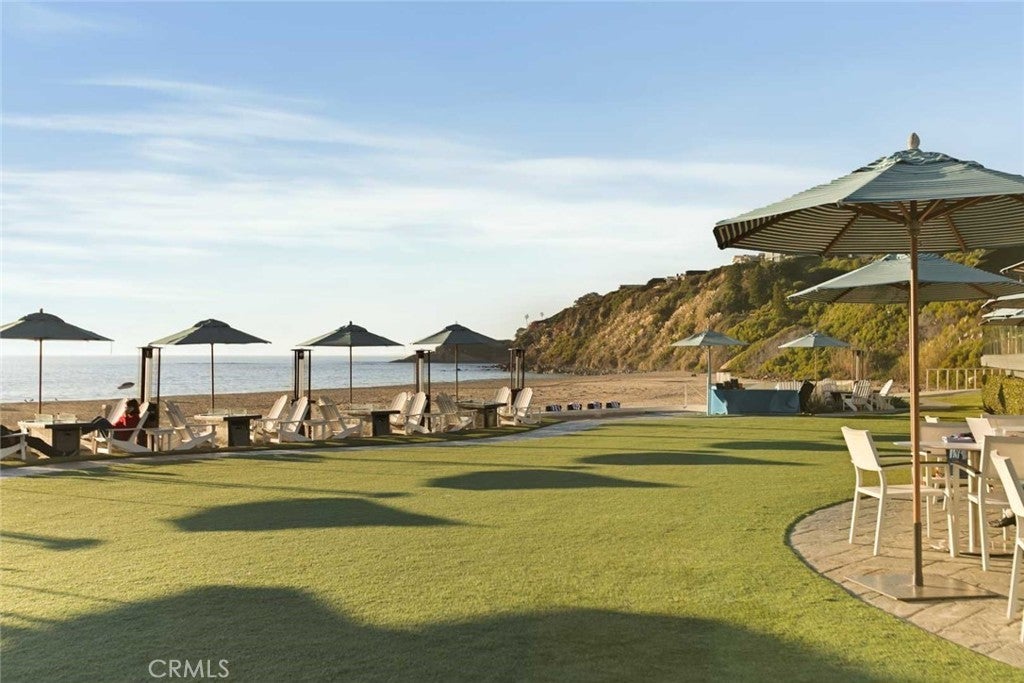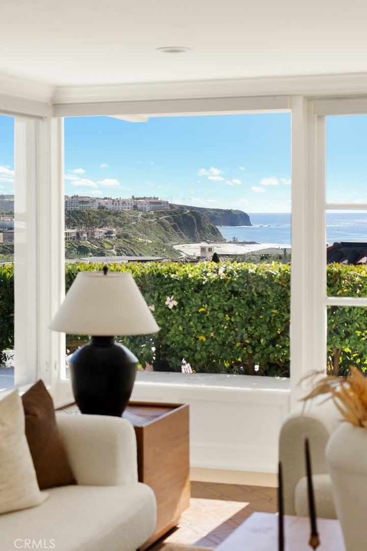 As waves break along Salt Creek Beach, evening lights shimmer after sunset and coastal bluffs rise to the summit of the towering Dana Point Headlands, all you have to do is relax and enjoy the views at this spacious single-level Hollywood Regency inspired contemporary home in Dana Point’s guard-gated Monarch Bay. Floor-to-ceiling windows and French doors welcome natural light and frame ocean views from most living areas. A formal entry with skylight leads to a living room that presents sit-down ocean and Headland views and a fireplace with custom marble surround while a formal dining room hosts a private patio, creating the ideal ambiance for elevated entertaining. Opening to two patios, the family room is bright, airy and warmed by a period-perfect wood-burning fireplace. A convenient pass-thru to the family room is just one of the amenities that awaits in the kitchen. Enjoy a nook with bay window, white cabinetry, stone countertops, marble backsplash, ample pantry storage, and top-tier appliances including a built-in refrigerator and an under-counter beverage refrigerator. Approximately 3,262 square feet, the three-bedroom, three- and one-half-bath design reveals understated sophistication with a soft white color palette that harmonizes with wood, stone and tile flooring, designer lighting fixtures, 11' ceilings and subdued millwork including crown molding and wall panels. A two-car garage and dual-zone air-conditioning are also featured. Manicured grounds extend nearly 11,305 square feet, offering room for future expansion of the home if desired. A patio wraps around the front of the residence, the side yard includes bocce ball and a putting green, and a private view courtyard displays an in-ground spa and generous patio space for entertaining. Monarch Bay, renowned as one of Southern California’s most sought-after oceanfront enclaves, offers residents access to the world-class amenities of its Monarch Bay Beach Club. Experience on-the-sand umbrella and beach-towel butler service, volleyball and oceanfront dining. A dog park, private tennis and pickleball courts, and beach fire pits are also included, and there are no HOA dues. Dana Point’s harbor, Laguna Beach, The Ritz-Carlton, and coastal trails and premium golf are moments from home.