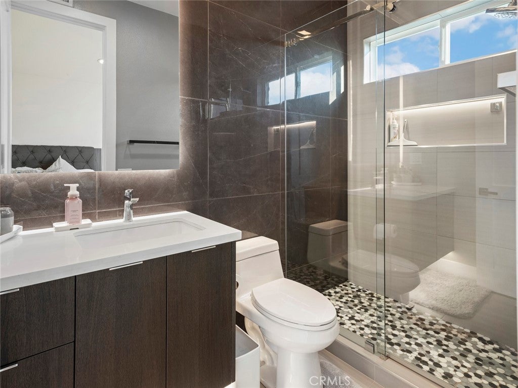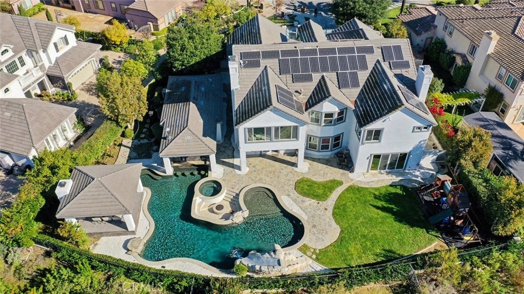 This million-dollar renovated home sits atop the Pinnacle at Vista Del Verde, at the end of a private cul-de-sac on a premium, nearly half-acre flat, elevated lot with wide-open city lights, rolling hills, and Catalina views on clear days. Positioned at one of the highest points in the community, it offers exceptional privacy and vantage while remaining approximately two miles from downtown Yorba Linda and Main Street. The property includes a detached ADU with private yard and access, and all bedrooms feature ensuite bathrooms and walk-in closets. A nearly $1,000,000 renovation completed in 2022 includes extensive exterior and interior upgrades. The arrival experience features a stone-paved driveway, new remote sliding vehicle gate and pedestrian gate, updated front elevation with stone accents, new windows, glass balcony railing, accent lighting, security cameras, new garage doors, and a 4-car garage with additional side parking and turnaround space. The main level offers a true first-floor bedroom suite, enclosed office, guest bathroom, laundry room, and multiple living spaces designed to capture the views and open to the backyard. The fully remodeled kitchen features Wolf appliances, Sub-Zero refrigerator, filtered water system, and a large waterfall island, opening to the family room, with separate formal dining and living rooms. Upstairs, the primary suite retreat enjoys expansive views of city lights and even the Disneyland fireworks. The primary spa-style bathroom with heated floors, soaking tub, walk-in shower, and private water closet. Secondary bedrooms each include custom ensuite bathrooms and walk-in closets. The backyard spans nearly half an acre (.43) and is designed for both daily living and entertaining, featuring a pool with rock waterfall and slide, spa, swim-up sunken bar, built-in BBQ, conversation pit, and raised patio with fireplace. The detached ADU includes a media/theater room, kitchenette, and bathroom with steam shower, along with its own private yard and separate access. Conveniently located near Black Gold Golf Club, Yorba Linda Country Club, downtown Yorba Linda, Brea Mall, and major freeway access via the 91 and 57.